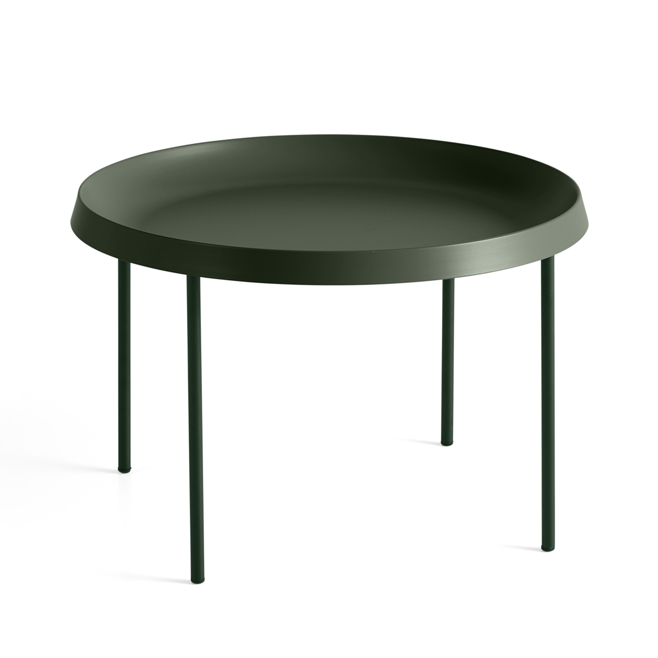 Tulou fra HAY er et lekkert runt brettbord av GamFratesi, perfekt både som sofabord og sidebord. Sargen på brettbordets skive er faset på både innside og utside, noe som gir et utrolig stilig uttrykk. Ved å gi Tulou fire rette og slanke tubeformede ben tar sofabordet ikke mye plass hverken fysisk eller visuelt.