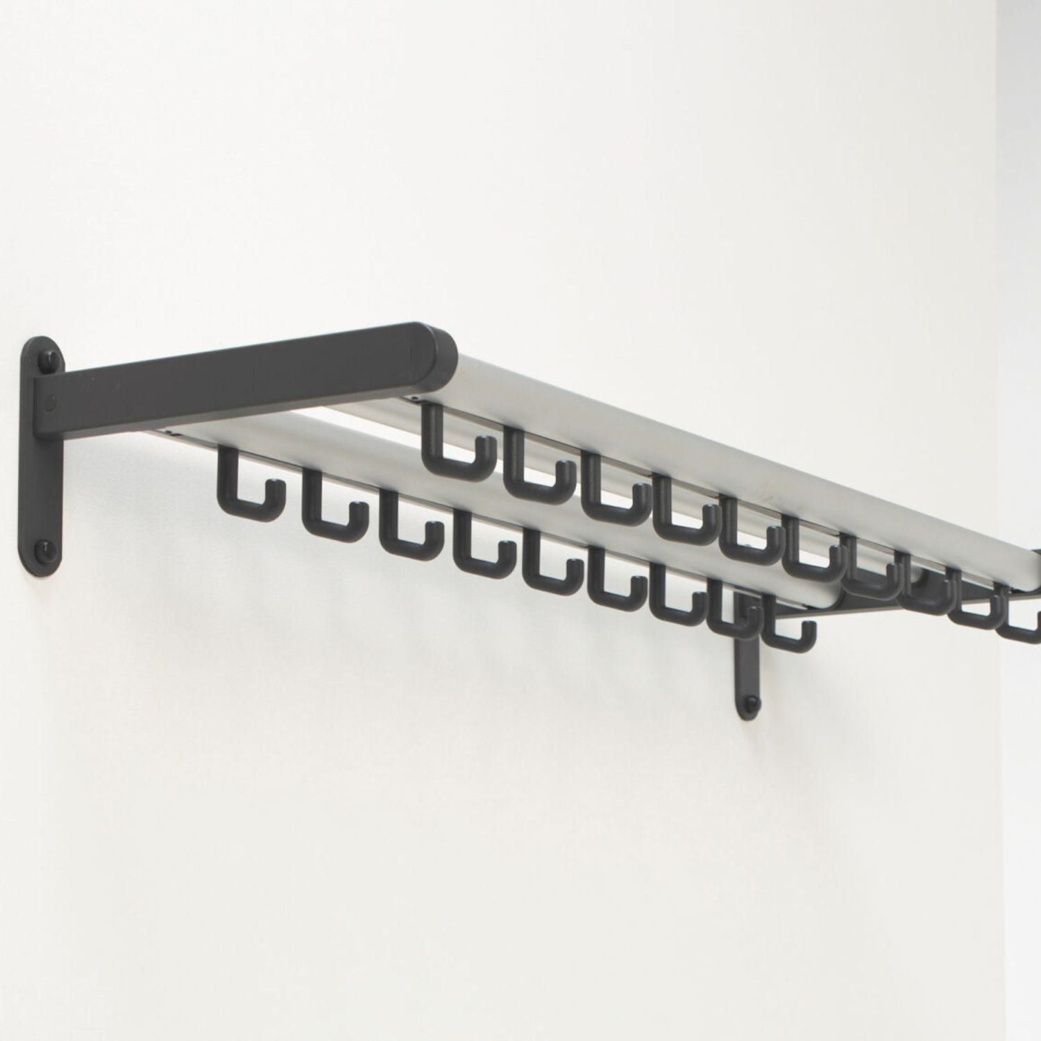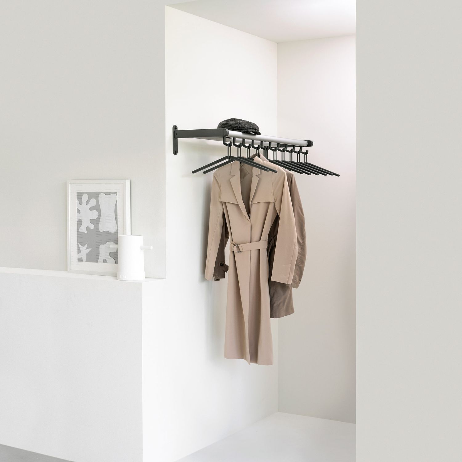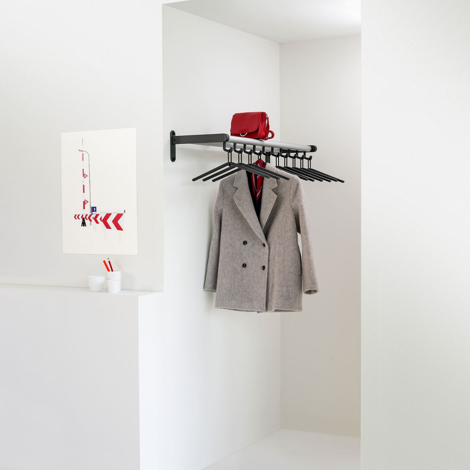 Serien er stilren og elegant og består av både veggfestede og frittstående garderobesystemer.