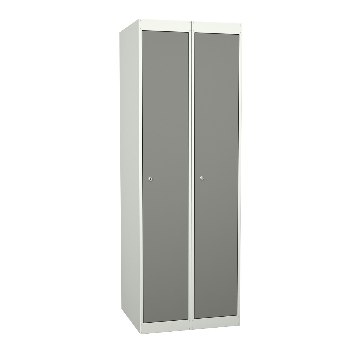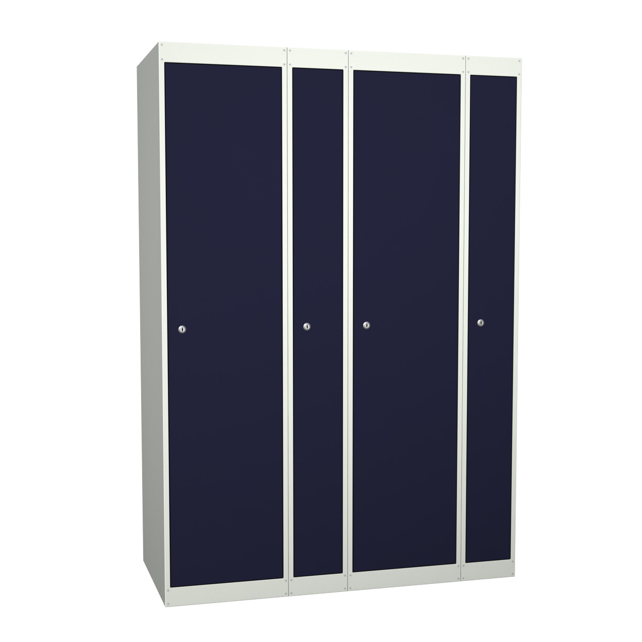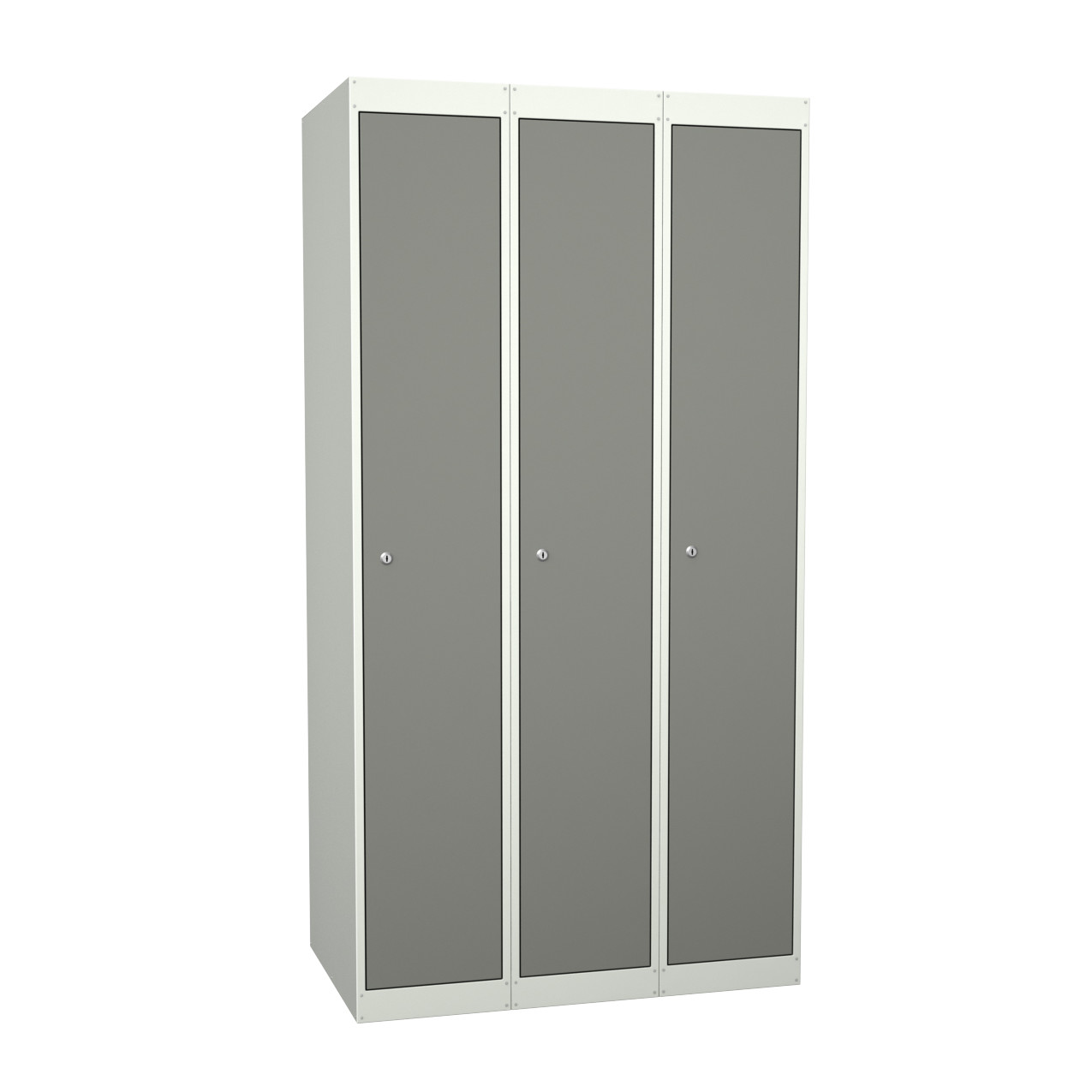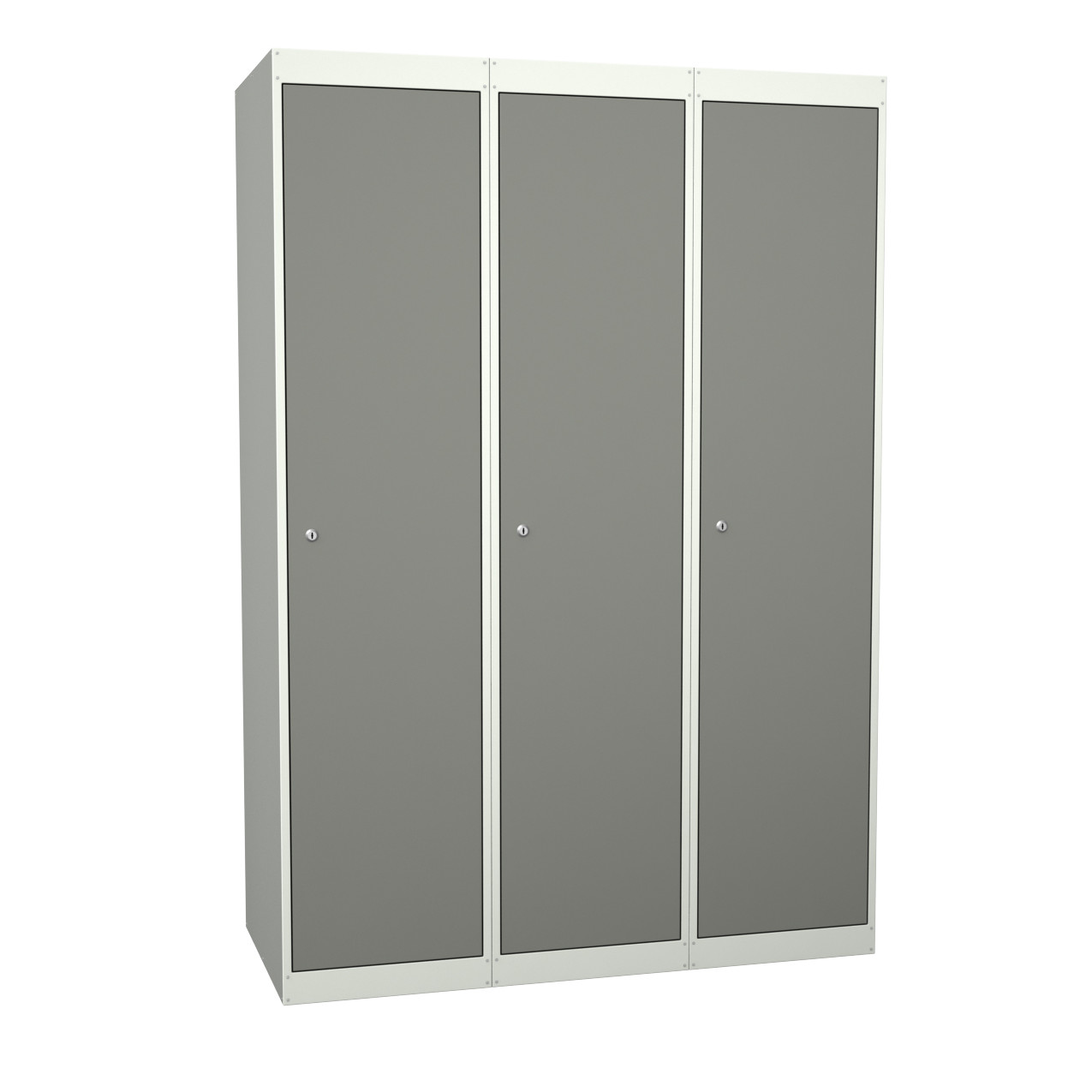 Solid garderobeskap i stål. Leveres i flere bredder som gjør at du kan sette sammen kombinasjoner etter behov. Skapet kan leveres i seksjoner med 1-2-3-4 rom i bredden. Standard dybde er 550mm. Finnes i flere forskjellige høyder og bredder. Understell: Ben, sokkel eller sittebenk kan leveres til alle skapkombinasjoner. Lås: Sylinderlås, hasp for hengelås, kodelås eller elektronisk lås. Innredning: Hattehylle, klesstang med to ankerkroker og håndkleknagg i sideplate. Skapet kan også leveres i spesialløsninger.