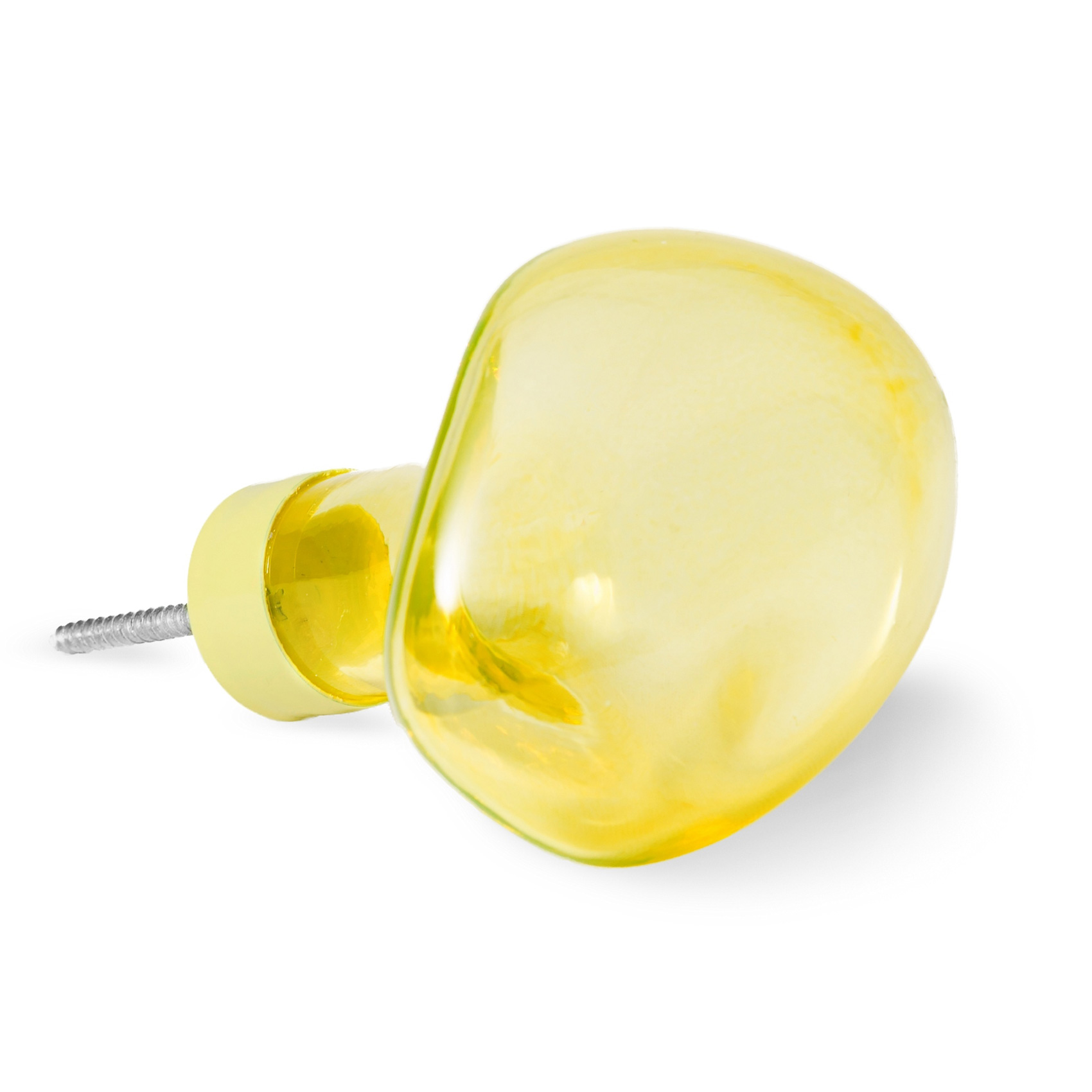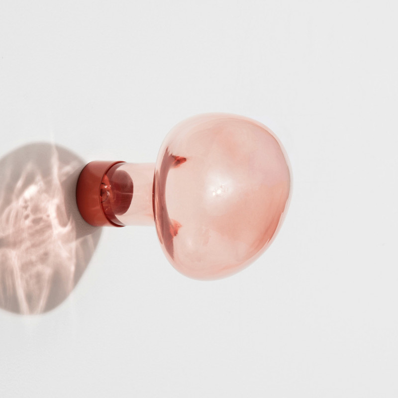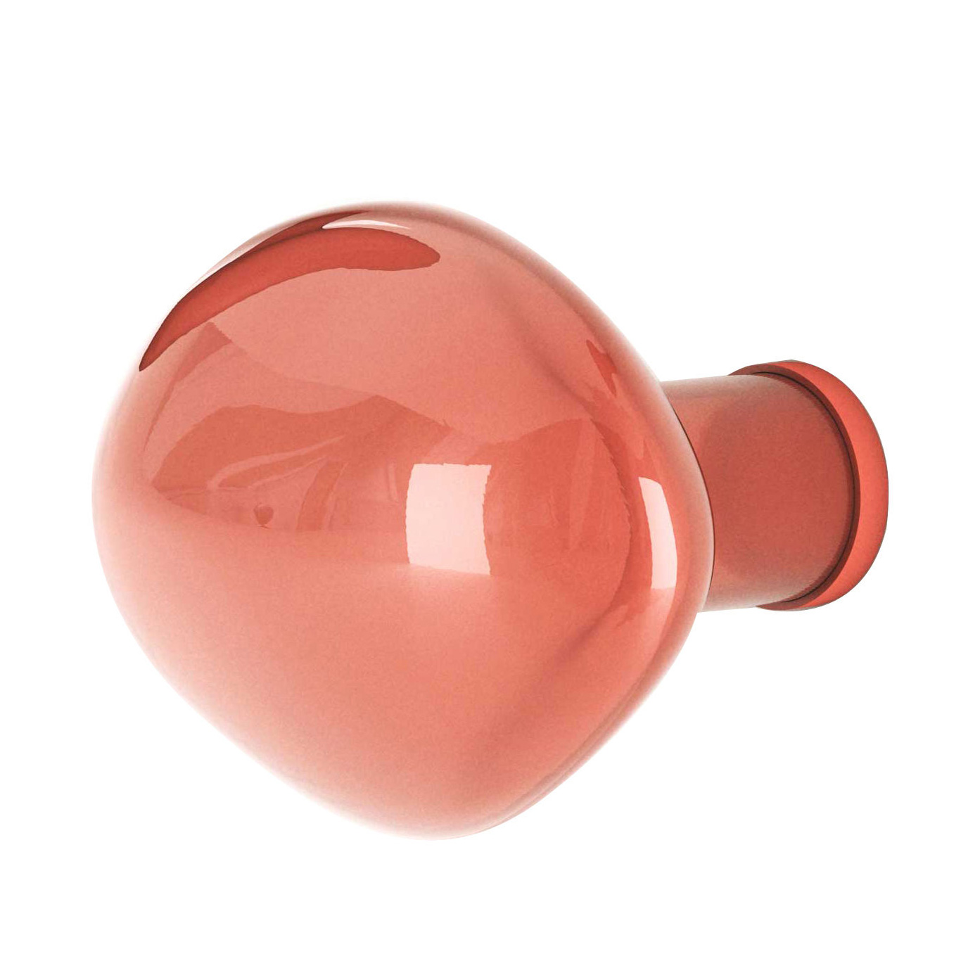 En vakker knagg i munnblåst glass med metallfeste, i en form som minner om en såpeboble som har frosset fast.