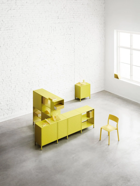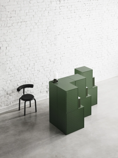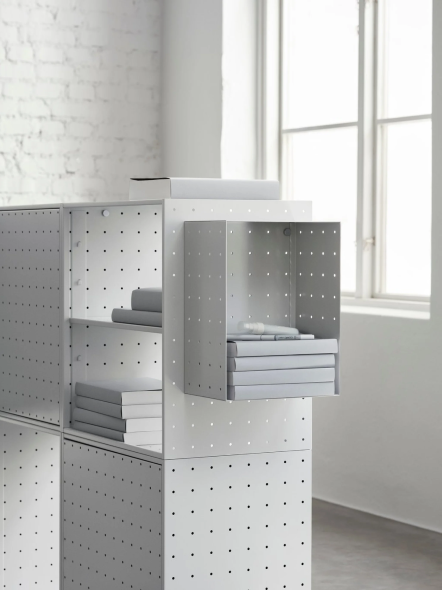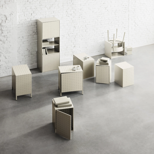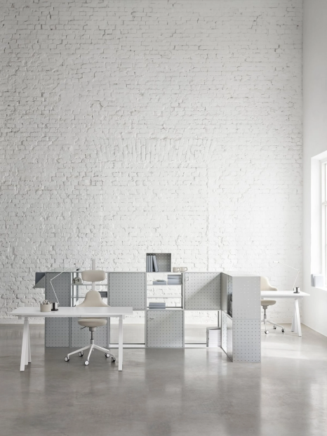Center Center er et system bygget opp av ulike moduler som kan settes sammen for å lage nesten alt du kan se for deg. Et enkelt hullmønster, gjentatt på alle sider gjør at Center Center kobles sømløst sammen. Det kan bygges både vertikalt og horisontalt, skape åpen eller skjult oppbevaring, gjemmes bort i hjørner eller dele rom med kreativitet. Med fleksibilitet og samarbeid i tankene, er dette modulær minimalisme laget for det moderne kontoret og utover det. En plattform som skal forsterkes av fantasien din.