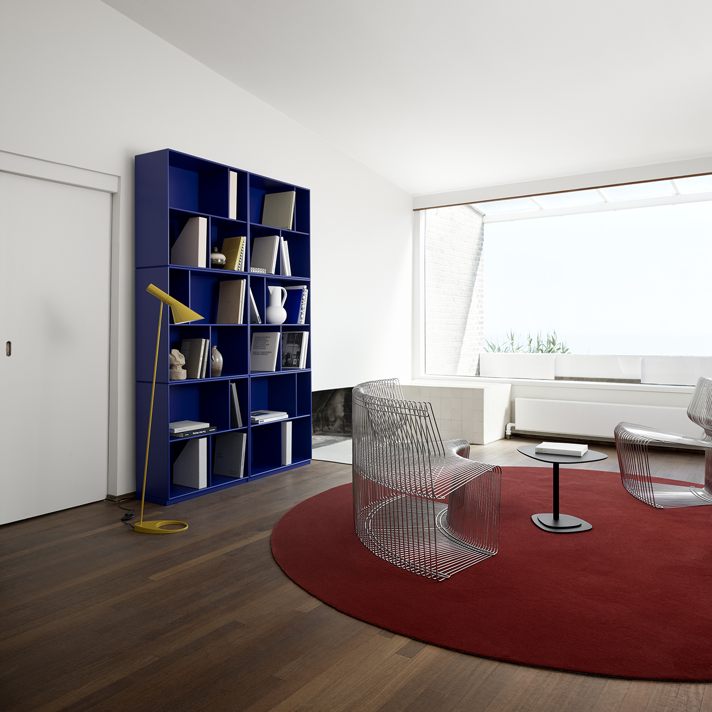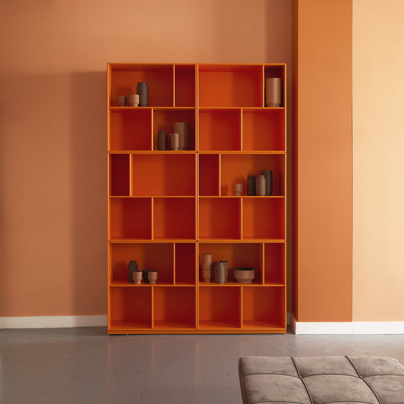 READ bokhylle fra Montana med et pent design med slisser i forskjellige størrelser. Designet inviterer til å lage flotte komposisjoner av bøker, blader og andre favorittsaker.