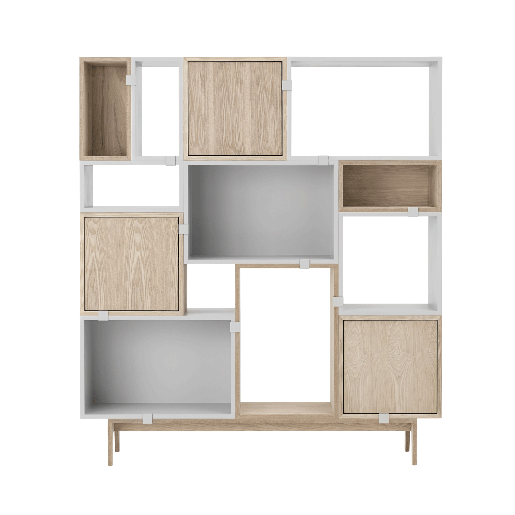 Medium: B:43,6cm x H:43,6cm (lysgrå, grå, hvit, eik, eik med lysgrå bakplate og eik med grønn bakplate – Åpen, med bakplate i samme farge, bakplate i kontrastfarge eller med dør i samme farge som skrog).