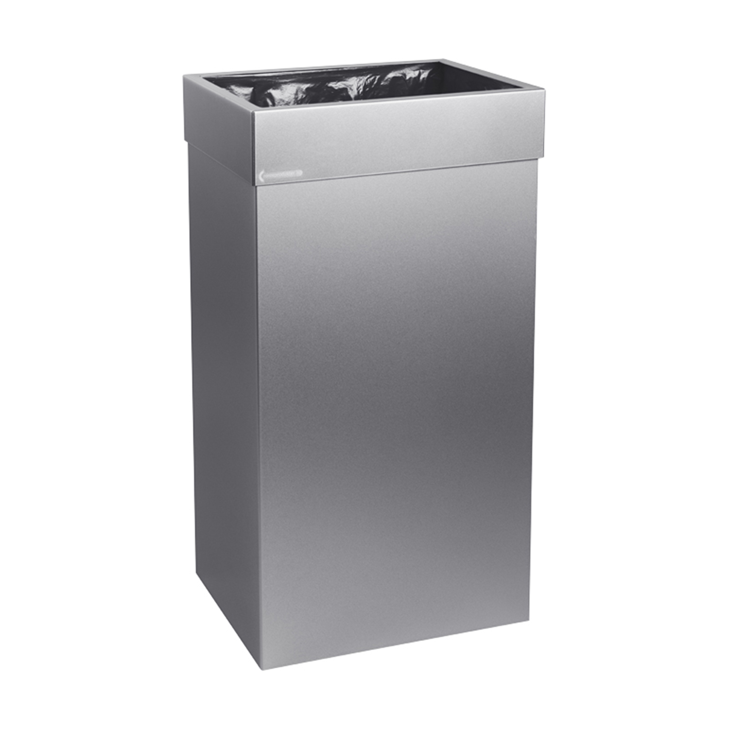 Beholderen leveres med hjul for god mobilitet på gulv, eller kan festes på vegg med egen brakett for enklere renhold.