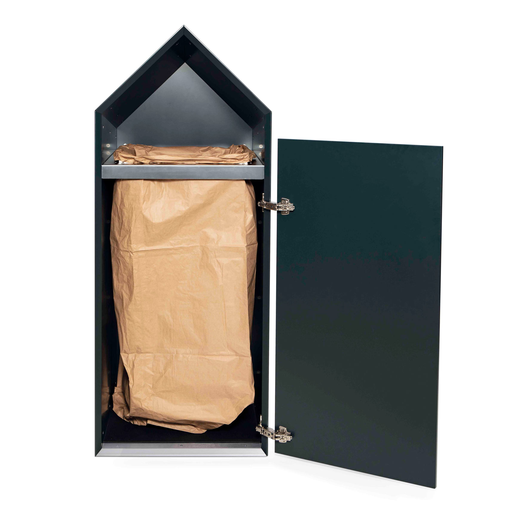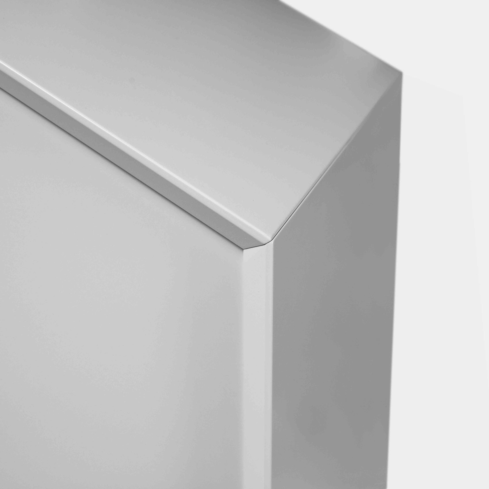 Ridge blir med sitt spesielle uttrykk et annerledes og uttrykksfullt innslag i det moderne kontoret. Den gir inntrykk av en innredningsdetalj, og ikke bare en miljøstasjon. Dette er en stabil konstruksjon oppbygd av 22mm MDF og lakkeres i 11 standard RAL-farger. Oppkjøringsrampe i rustfritt stål for lettere oppkjøring av en 140 liters dunk, er ikke bare en praktisk detalj, men også en designmessig fremtredende del.