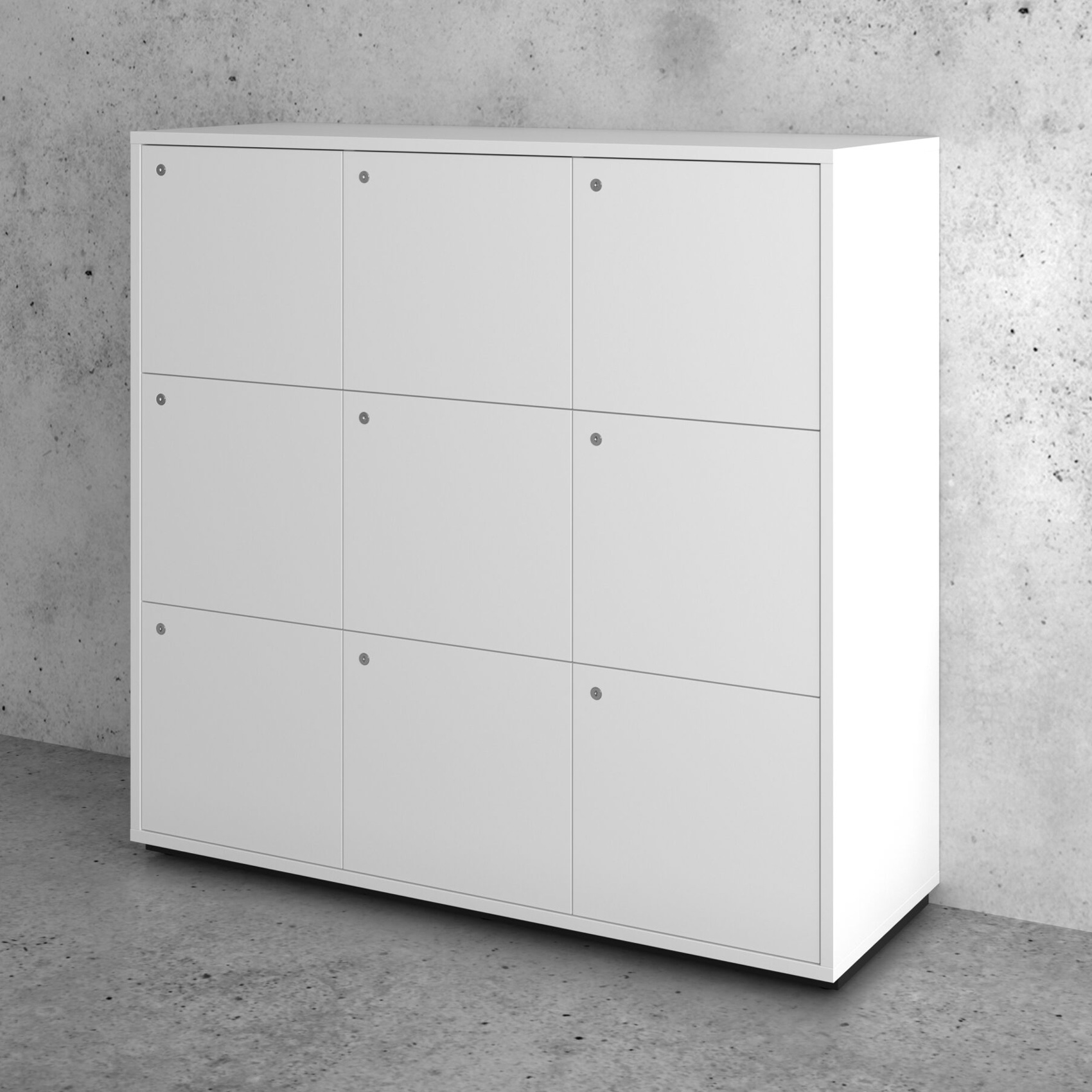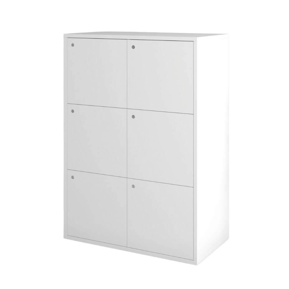 Med JIVE lockers løses din firmas oppbevaringsbehov på en stilren, praktisk og oversiktlig måte. Skapene fås i ulike høyder og bredder og kommer som standard med en grepsfri front med push lock samt en lås med nøkkel, hvor nøkkelen fungerer som grep.