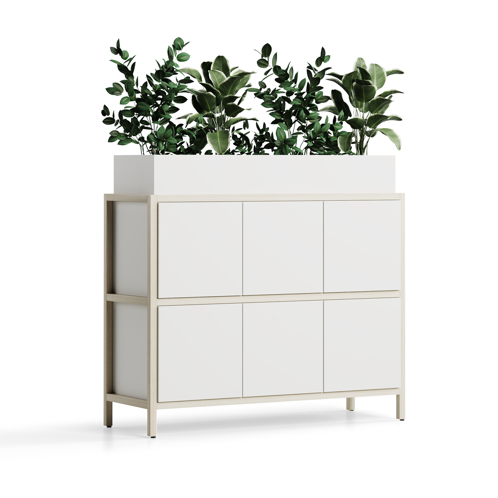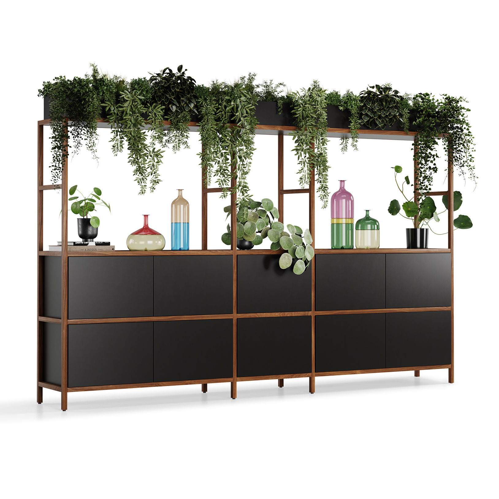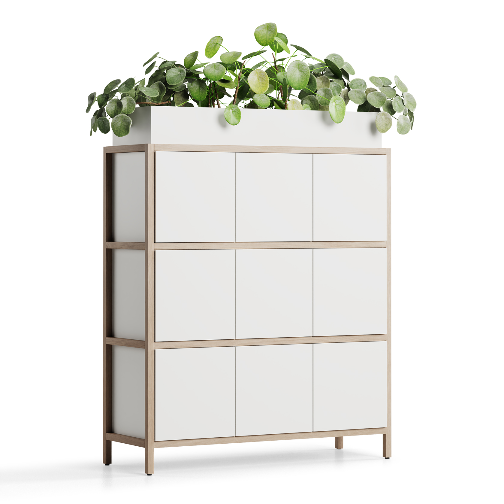 Frames er et modulært oppbevarings- og romoppdelingssystem som fyller de stadig skiftende kravene til det moderne arbeidsområdet. Hyller, skap og personlige skap kompletteres med plantekasser, for å inkludere flere planter for et naturlig og sunt arbeidsmiljø.