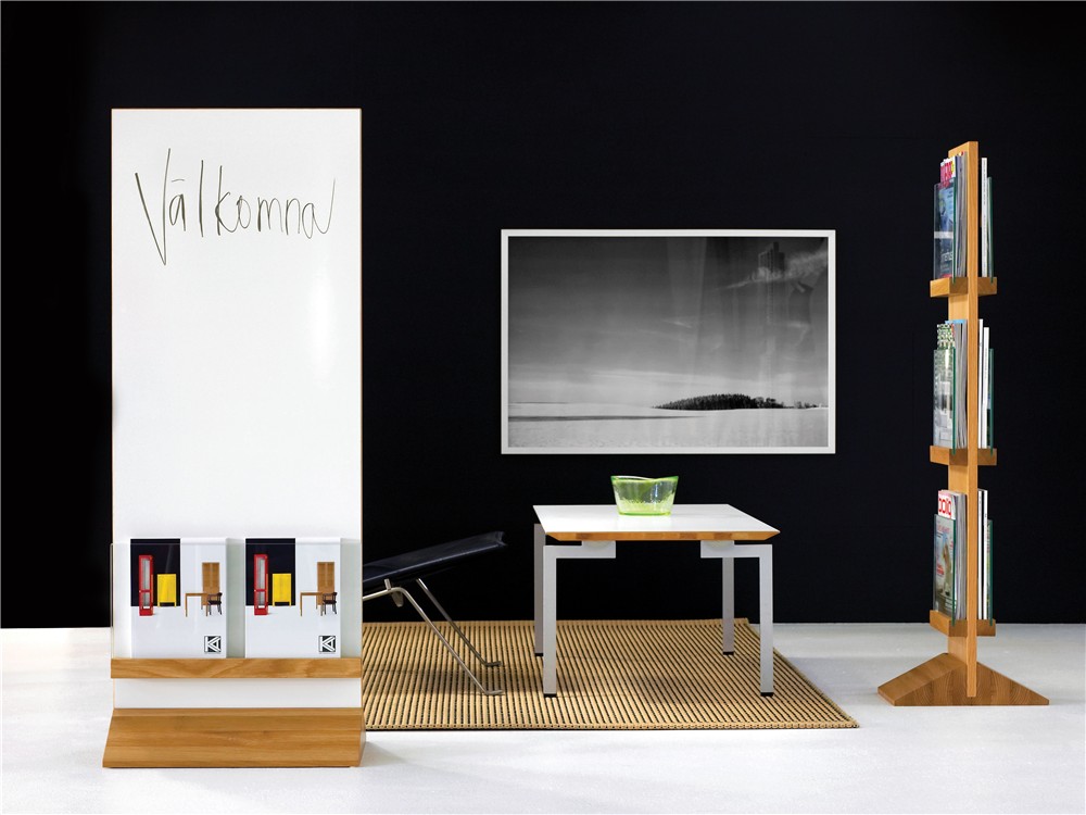 Herdet klarglas i höydene 150 (=A5) och 230 (=A4) mm. Mot tillegg finnes plexiglass. Fot og lister er i massivt tre, enten i eik, bjørk eller i standardfarger. Behandlet med klarlakk. Spesialmål og andre utførelser etter forespørsel. Som tillbehør fås infreste hjul i foten, ekstra magneter til whiteboard og avdelere i massivt tre som settes på glasset for inndeling i fag.