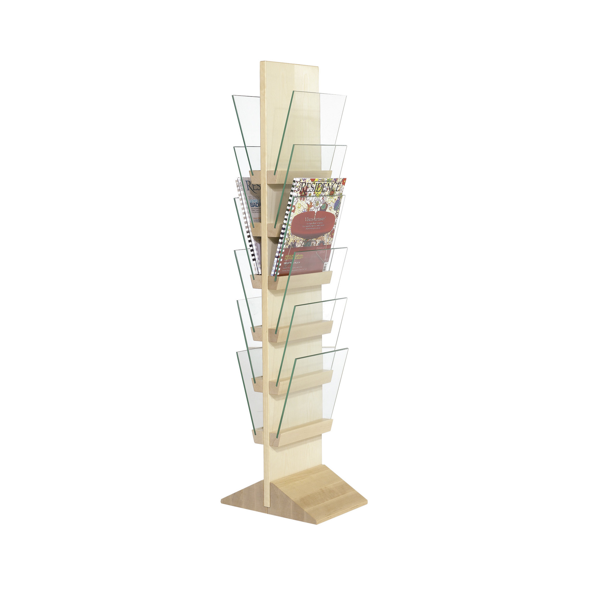 2. Tidsskriftsstativ med rette eller vinklede lister monterade på en eller begge sidene av ryggen.