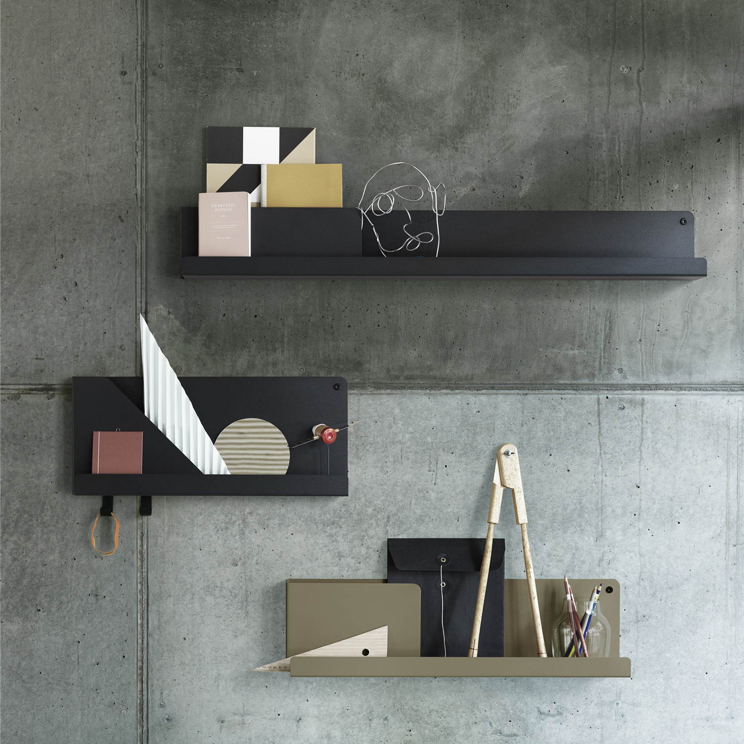Det unike og minimalistiske uttrykket som hyllen gir er designet av Johan Van Hengel for Muuto. Folded Shelves gir inntrykket av brettet papir, men er laget av stål.
