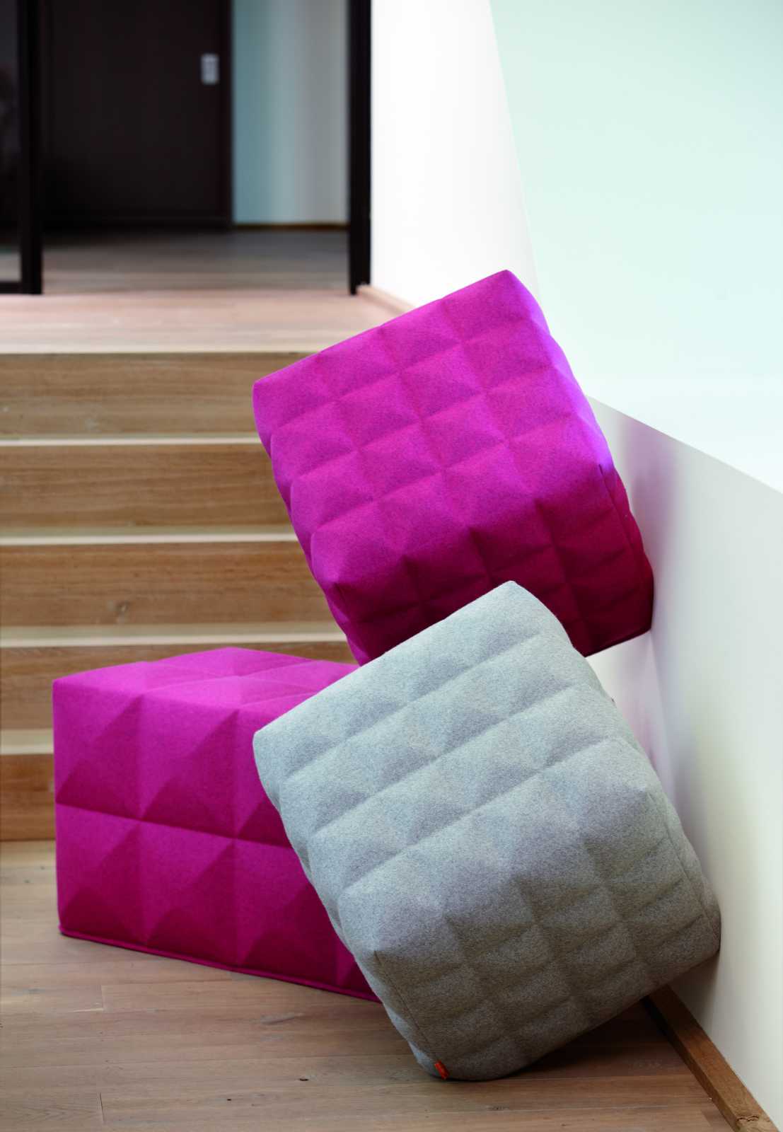 BuzziCube er en glede for øyne og kropp. Takket være sin revolusjonerende formen og high-tech produksjonsprosessen, er denne puffen unik i sin klasse. Puffen er polstret med myk filt som fås i alle BuzziFelt fargene, Den kommer i flere størrelser og former;