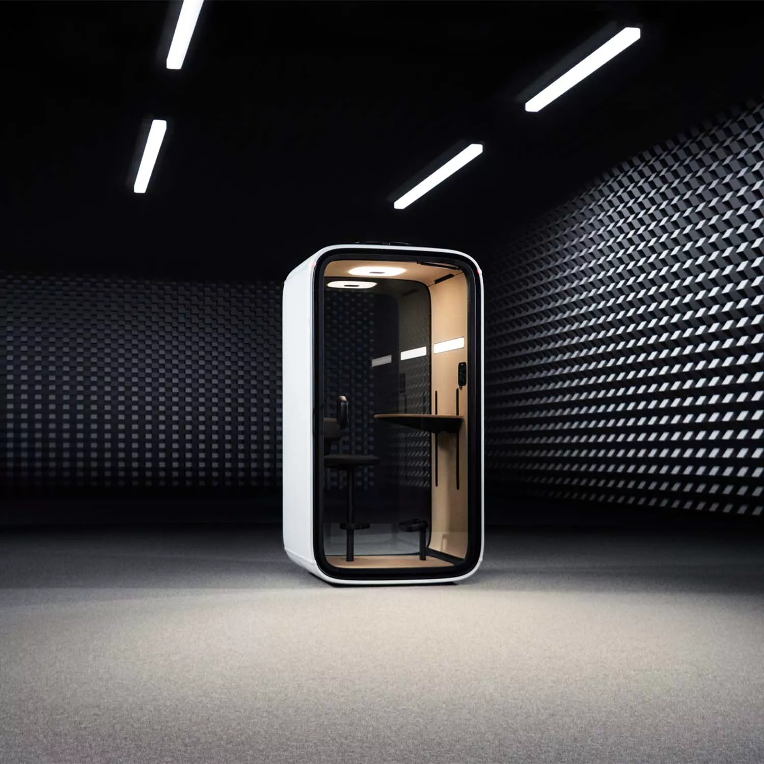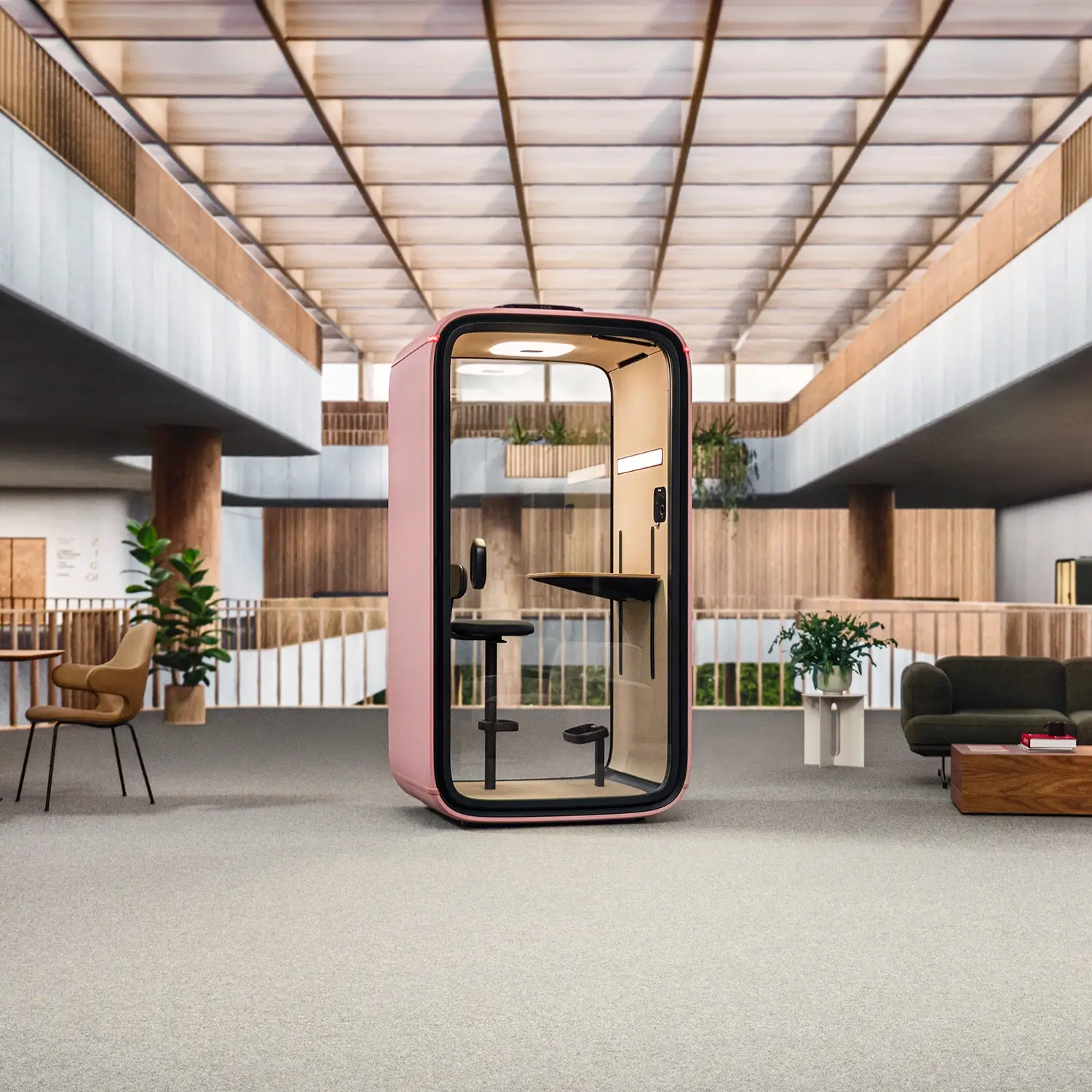 En smart, romslig arbeidsstasjon for én person optimalisert for videosamtaler og designet for fokusarbeid. Bygget smart. Laget for å vare. A-klasse lydisolering finjustert til menneskelige talefrekvenser betyr uavbrutt privatliv. Så du kan jobbe fritt uten å forstyrre andre. Kraftig ventilasjon gjør at luften inne i kontorputen endres fullstendig omtrent hvert 66. sekund – slik at du alltid kan puste rolig. Automatisert belysning reagerer automatisk på dine behov. Velg mellom forhåndsinnstilte, optimaliserte lysmoduser som er ideelt justert for videosamtaler eller fokusert arbeid. Få enda mer ut av din smarte pod med Framery arbeidsplassteknologi. Lås opp mobilbestillinger, walk-in-reservasjoner og kalendertilkobling på tvers av hele organisasjonen.