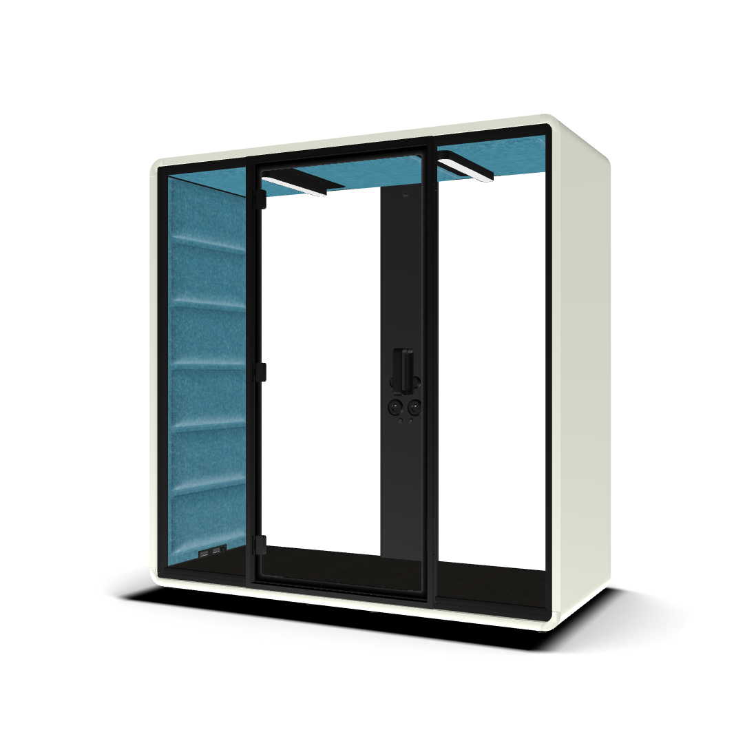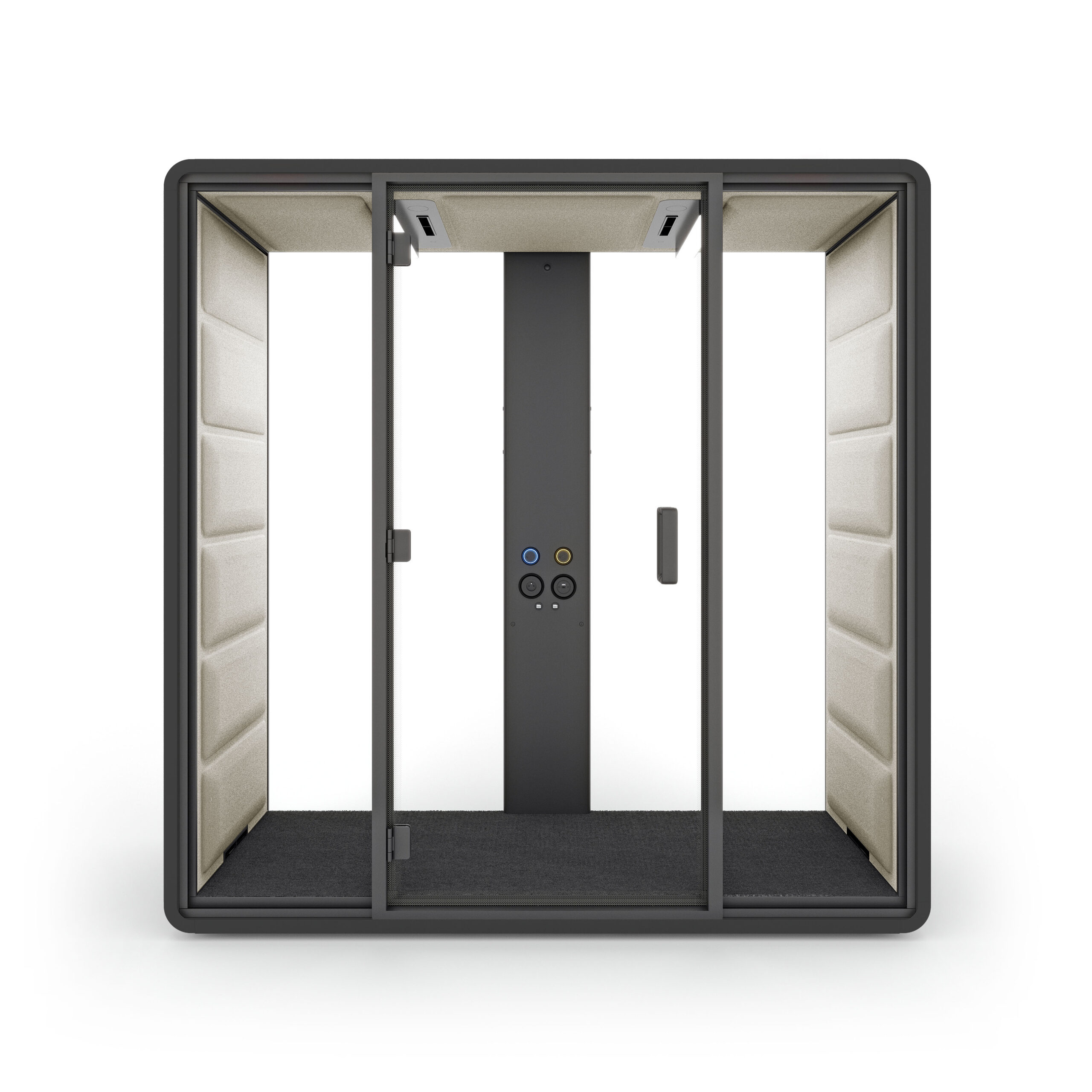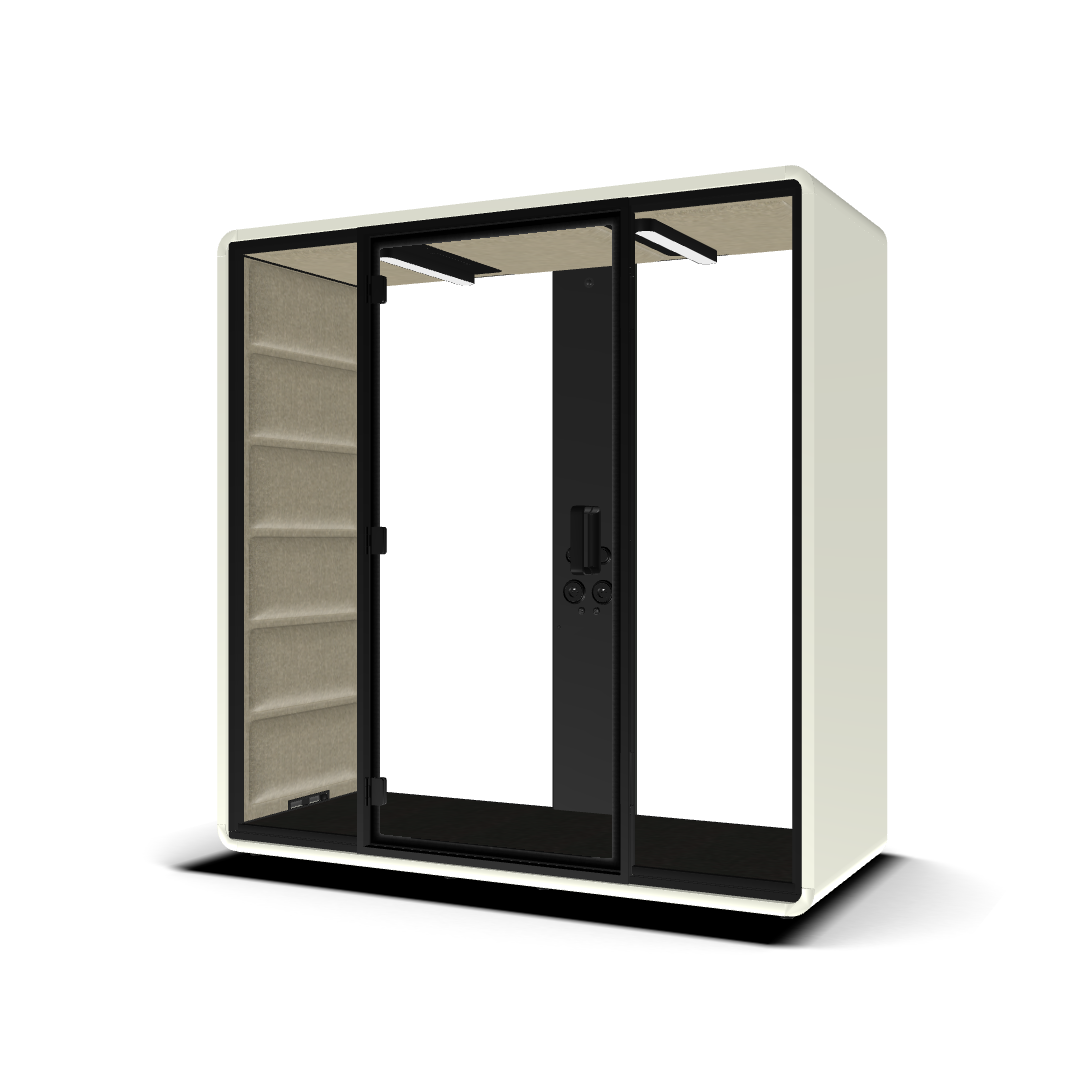 HushFree.XM er en akustisk pod designet for tomannsmøter, som takket være sin kompakte størrelse også passer godt inn i mindre kontorlokaler. Den er ideell for intime møter og ansikt-til-ansikt samtaler. HushFree.XM har et belysningssystem med en intensitet på 500 lux på bordnivå, som gir utmerket arbeidslys og sikrer at du kan jobbe effektivt og komfortabelt. Den er også utmerket for konseptuelt arbeid. Poden er klassifisert som ISO 23351 Klasse B, som gir den høy grad av lydisolasjon og integritet. Sofaer og bord er tilvalg.