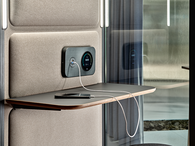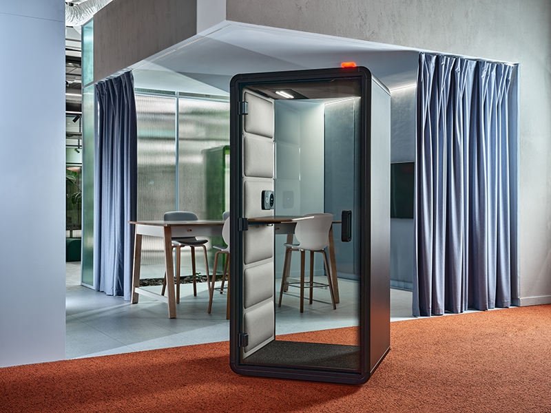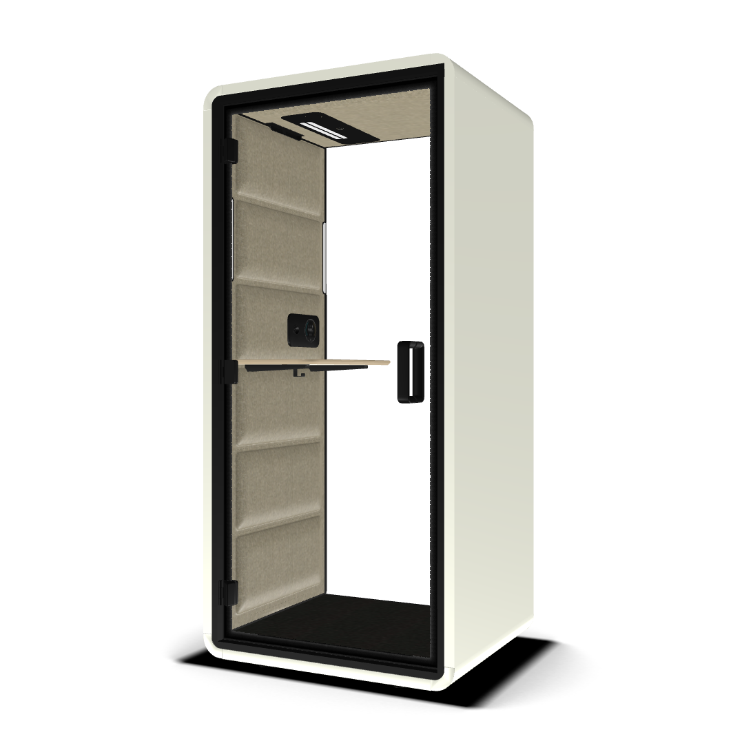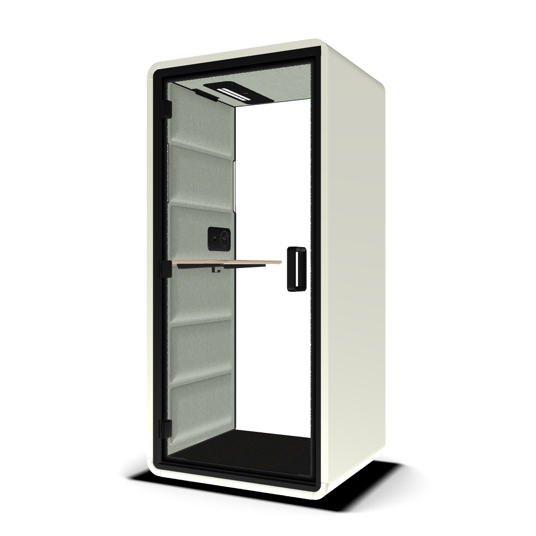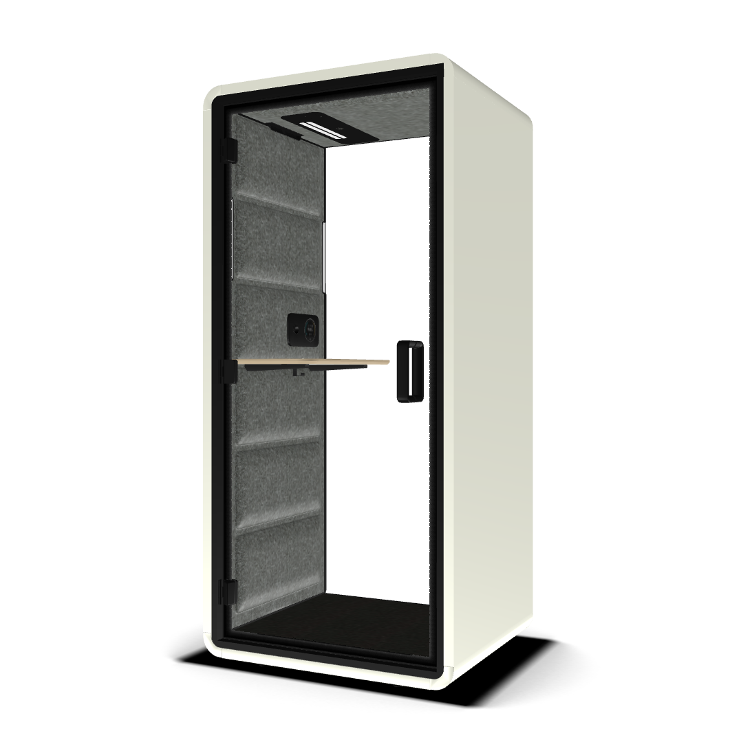 HushFree XS er en akustisk pod som tar opp minimal plass samtidig som den gir best mulig akustikk og pod-ytelse. Den er ideell for individuelt arbeid og korte møter. XS er utstyrt med et ergonomisk bord og ekstra LED-sidebelysning for brukerens ansikt, som gir utmerket arbeidslys og sikrer at du kan jobbe effektivt og komfortabelt. Poden er klassifisert som ISO 23351 Klasse A, som gir den høyeste grad av lydisolasjon og integritet.