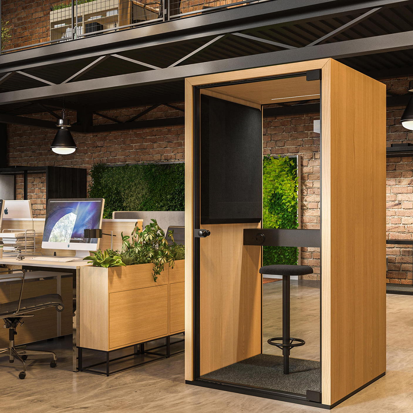 En kompakt telefonkiosk for private telefonsamtaler og videokonferanser. Perfekt passform for å redusere distraksjoner og øke produktiviteten på et støyende kontor.