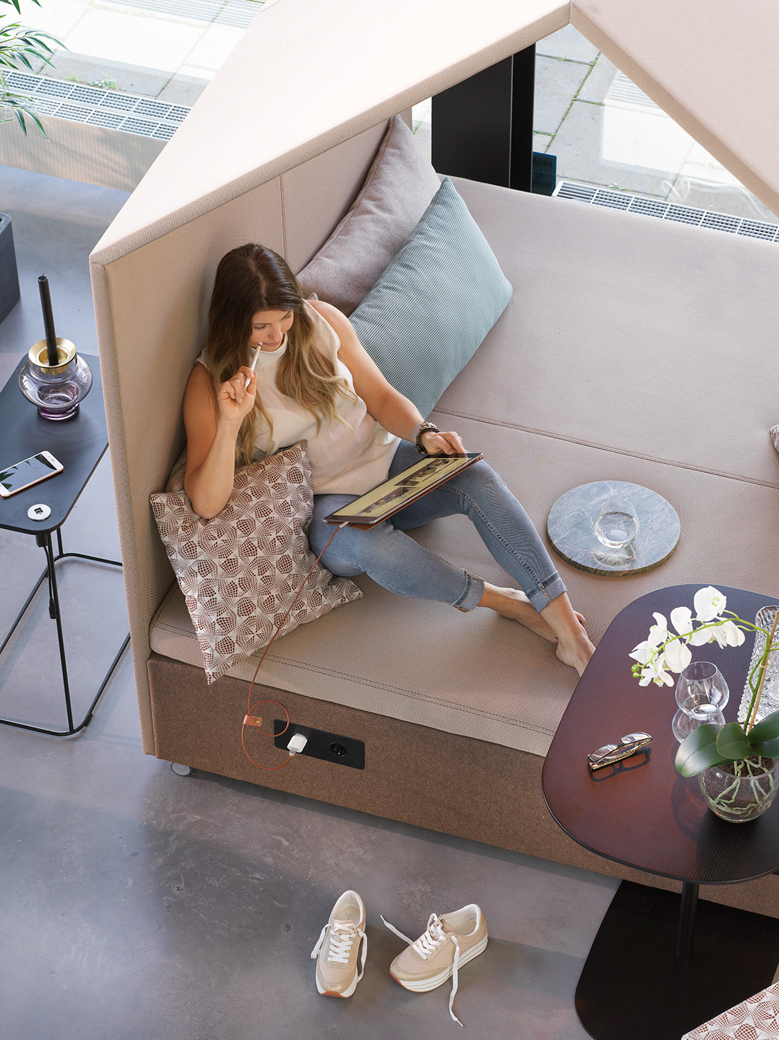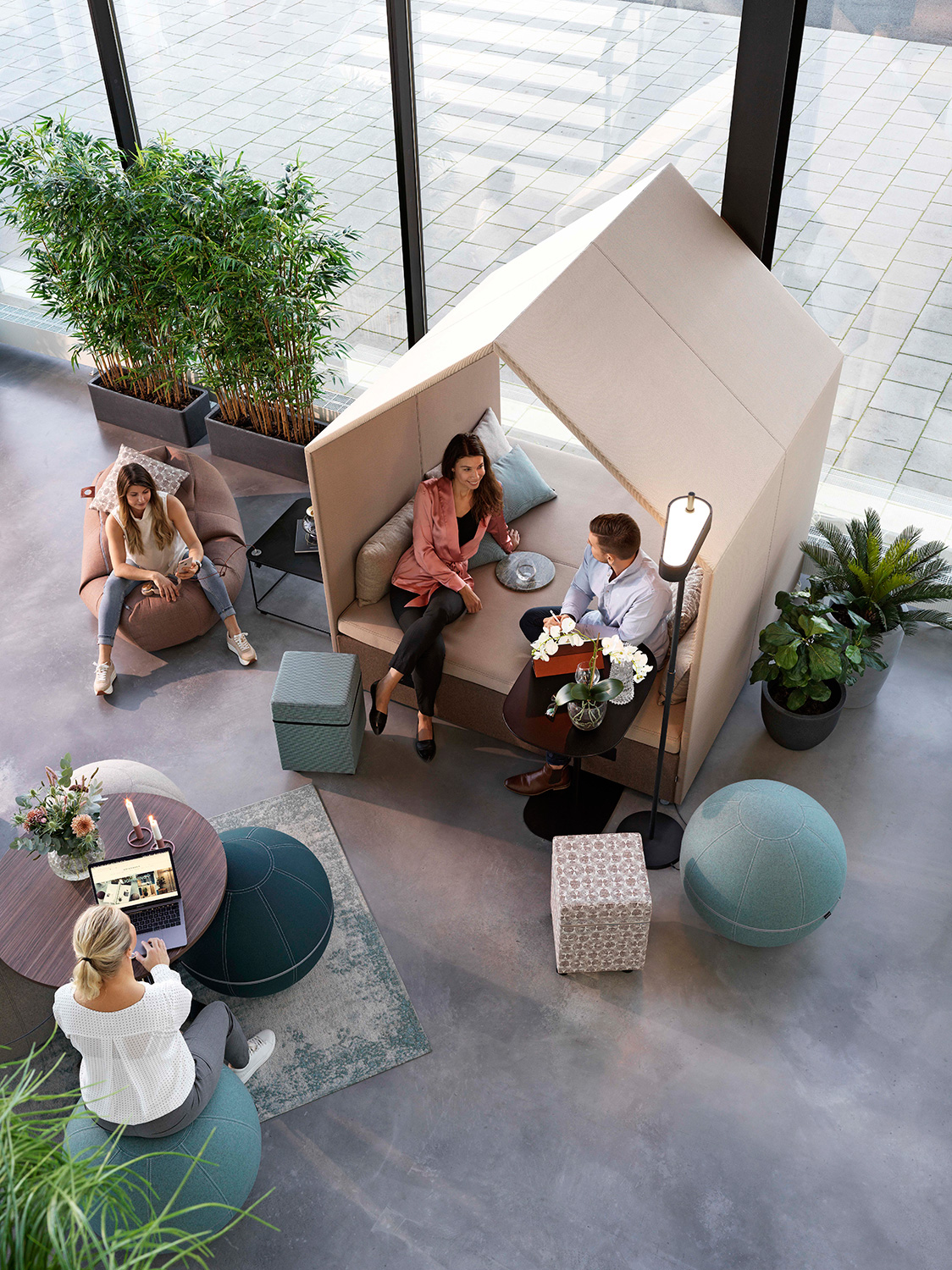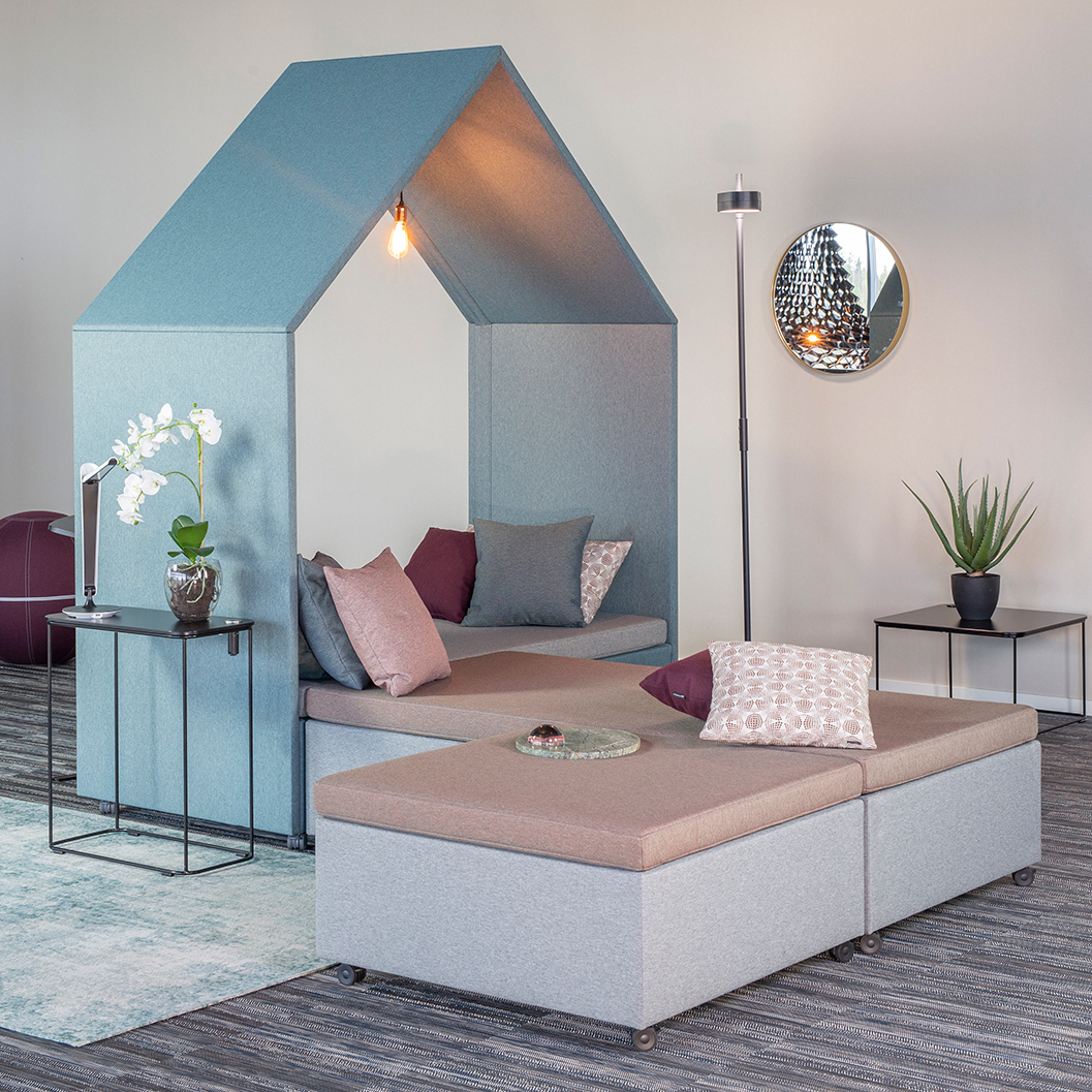 Flytt møtet til loungen og ta dialogen i et avslappet miljø. Hut Lounge Collection tilbyr deg en komfortabel og tilrettelagt plass som passer flere formål. Kombiner The Hut Lounge med to benker og skap et rom for brainstorming, avslappende arbeid eller en liten hvilestund. Tenk gjerne utenfor boksen og bruk de ulike delene fritt i et morsomt oppsett. Alle benk-modulene har hjul så de kan lett flytte rundt på og låses etter behov. Velg blant mange ulike standard tekstiler og farger.