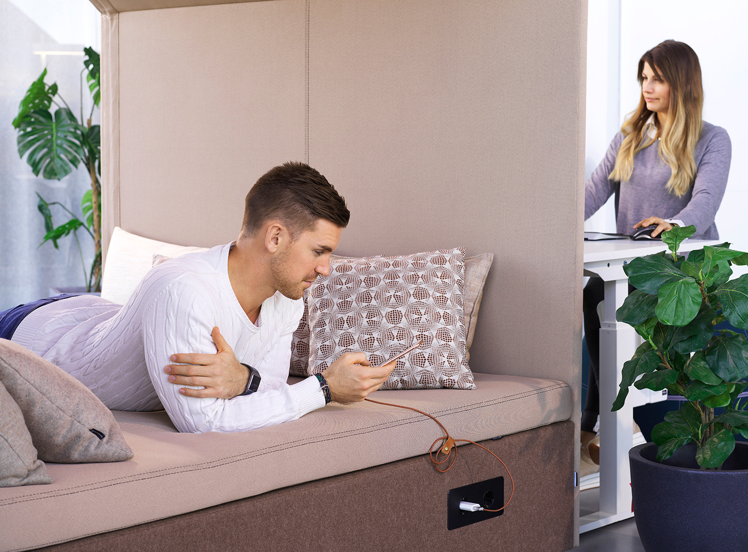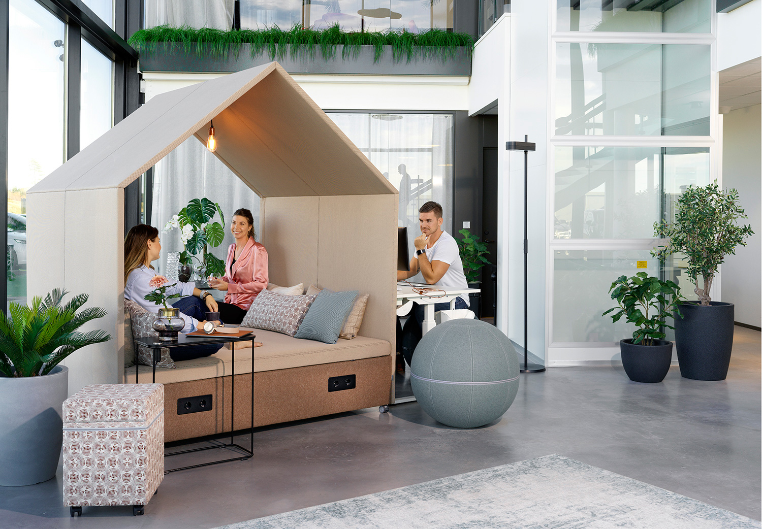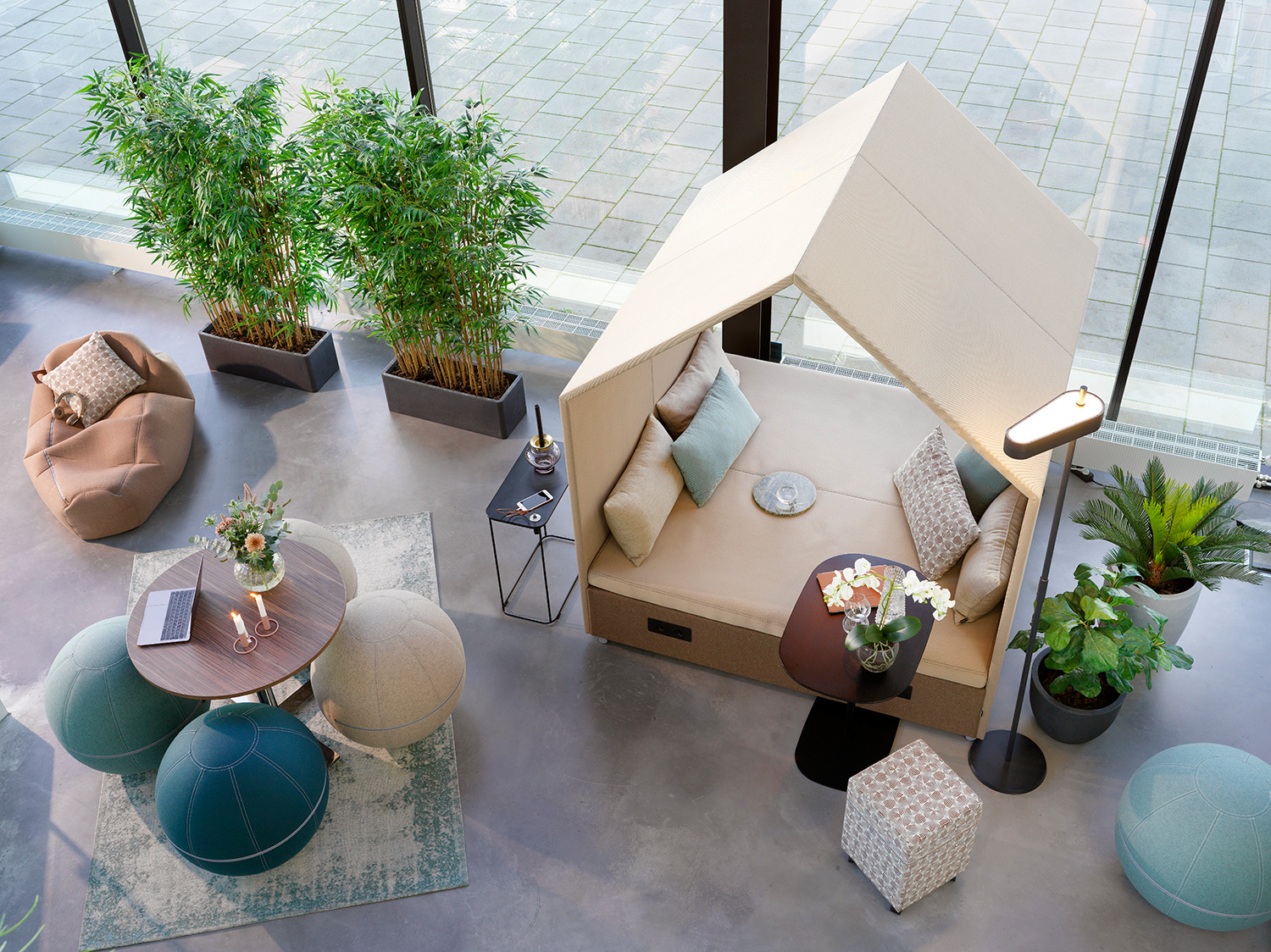 Flytt møtet til loungen og ta dialogen i et avslappet miljø. Hut Lounge Collection tilbyr deg en komfortabel og tilrettelagt plass som passer flere formål. Kombiner The Hut Lounge med to benker og skap et rom for brainstorming, avslappende arbeid eller en liten hvilestund. Tenk gjerne utenfor boksen og bruk de ulike delene fritt i et morsomt oppsett. Alle benk-modulene har hjul så de kan lett flytte rundt på og låses etter behov. Velg blant mange ulike standard tekstiler og farger.