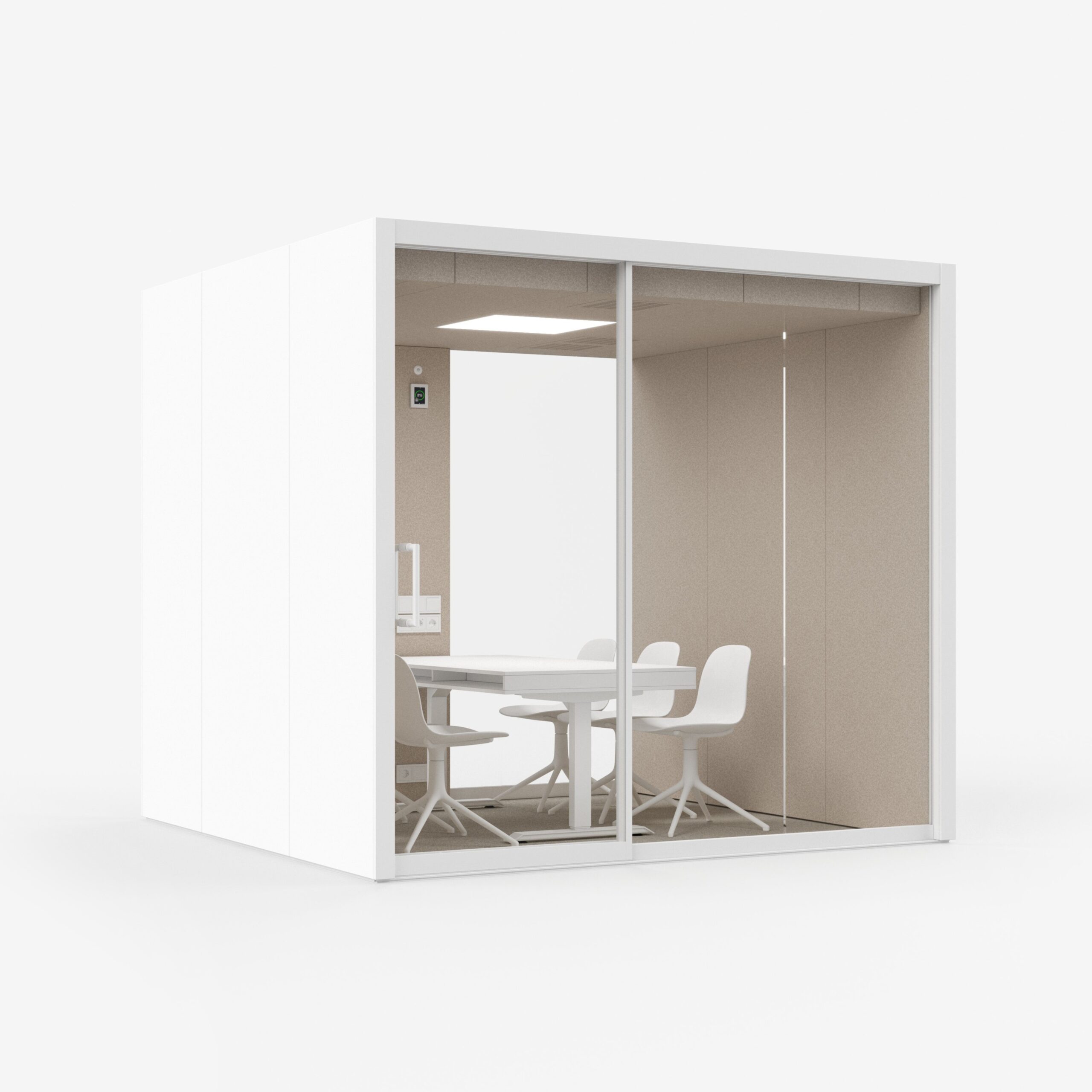 Vetrospace L+ er den perfekte løsningen for mellomstore møter og samarbeid. Denne store akustiske podden, utstyrt med G4 luftfilter og CO2-sensorstyrt ventilasjon som standard, gir plass til opptil seks personer. Den romslige designen fremmer kreativt arbeid og interaksjon, mens 4000K sensorstyrt LED-belysning gir utmerket arbeidslys, slik at du kan jobbe effektivt og komfortabelt. Med ISO 23351 Klasse A klassifisering får du den høyeste grad av lydisolasjon og integritet.