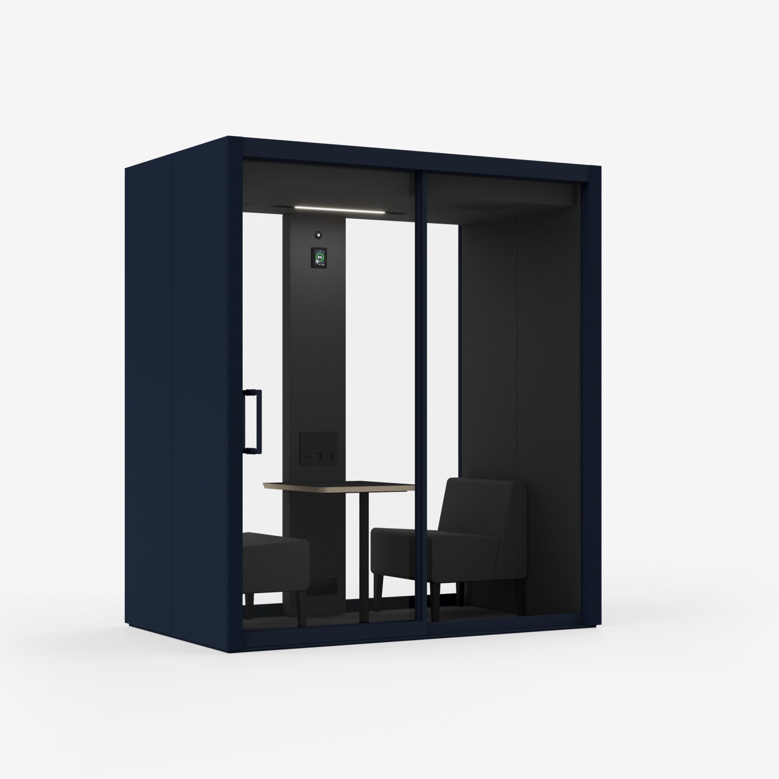 Vetrospace S+ Air er den perfekte løsningen for private samtaler, fokusert arbeid og telefonmøter. Denne kompakte akustiske podden, utstyrt med G4 luftfilter og CO2-sensorstyrt ventilasjon som standard, gir plass til én person. Den romslige designen fremmer kreativt arbeid og interaksjon, mens 4000K sensorstyrt LED-belysning gir utmerket arbeidslys, slik at du kan jobbe effektivt og komfortabelt. Med ISO 23351 Klasse A klassifisering får du den høyeste grad av lydisolasjon og integritet.