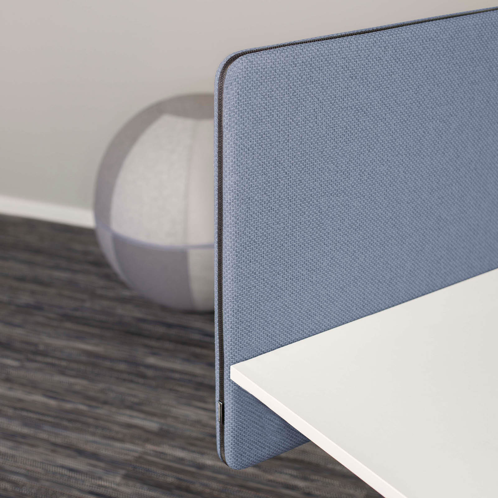 Består av en treramme, 30 mm lydabsorbent og skumlaminert stoff.