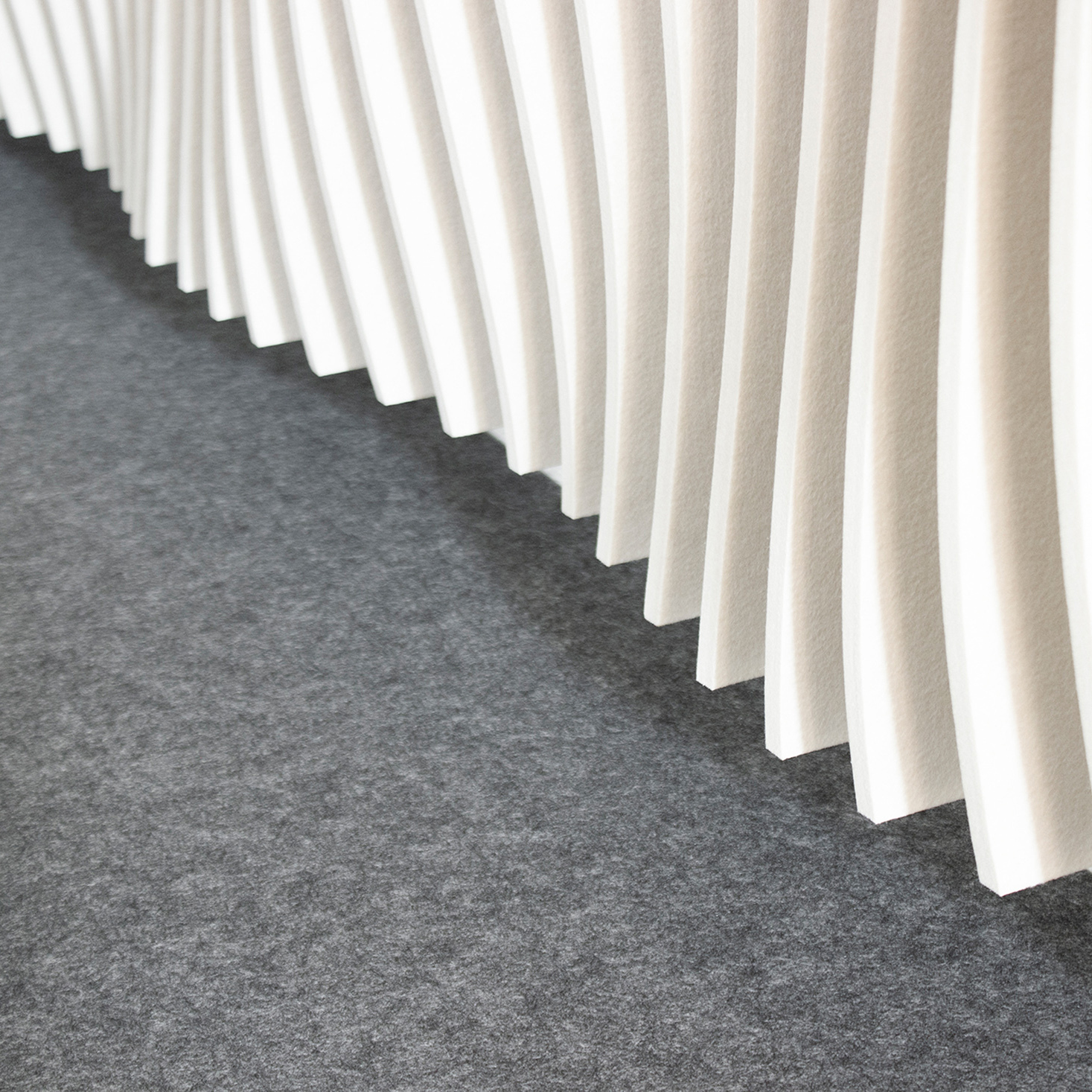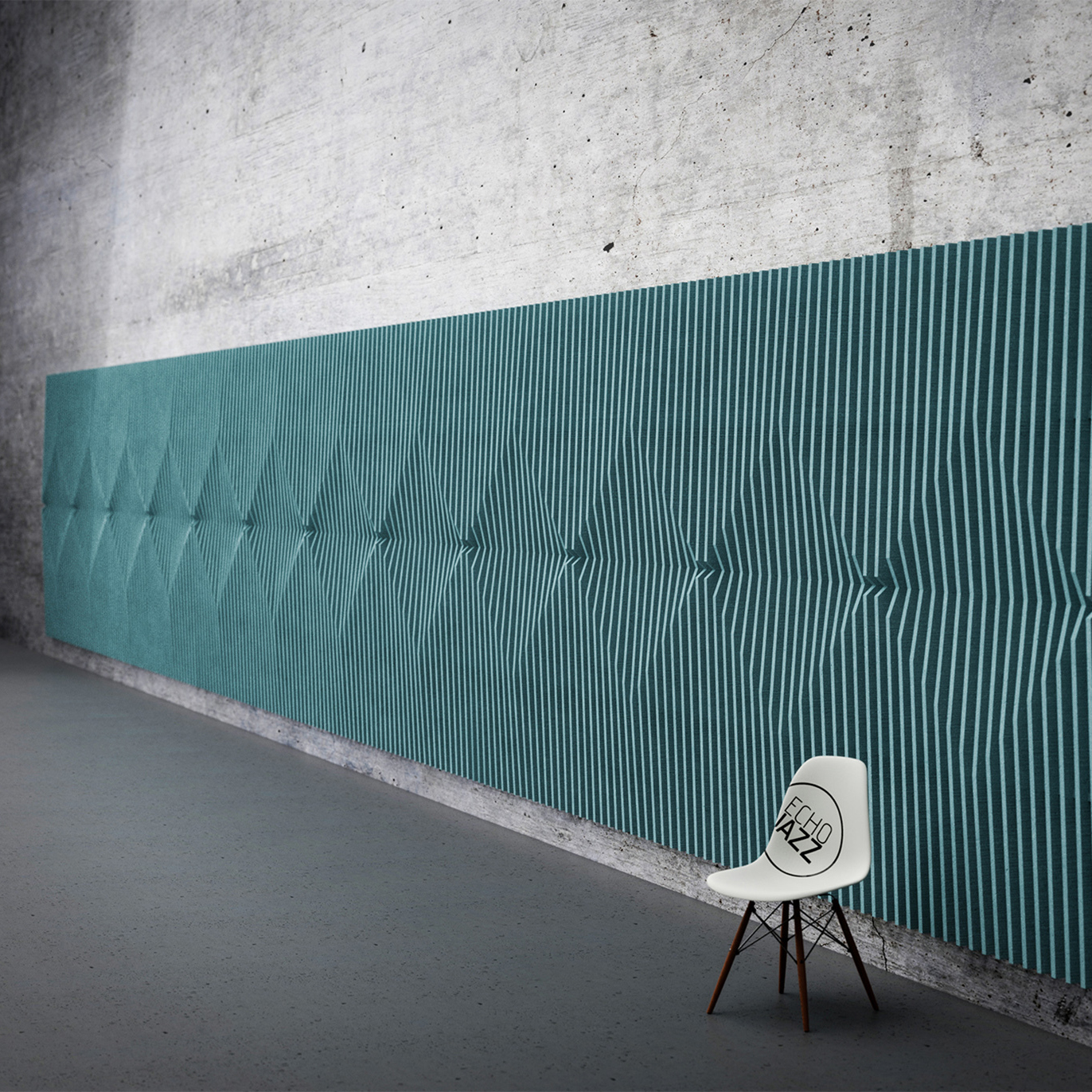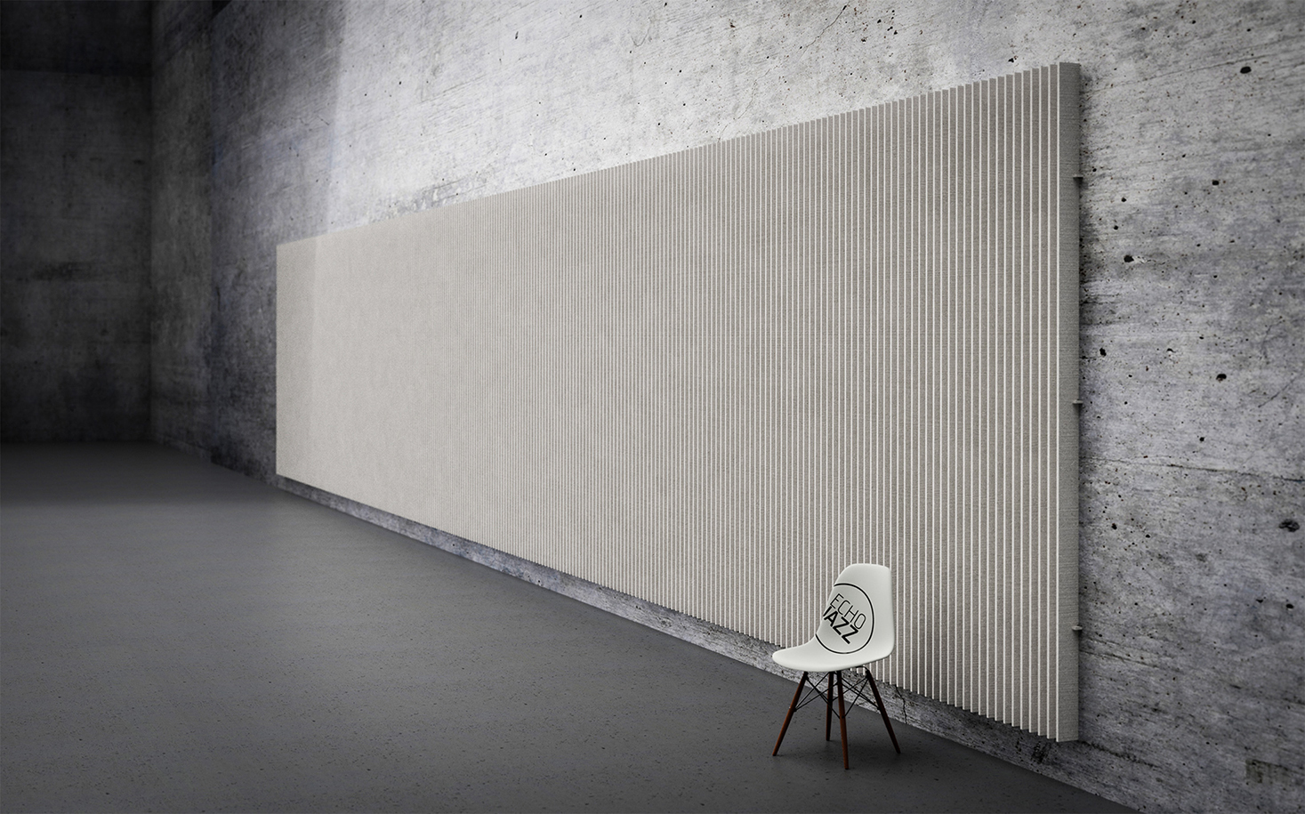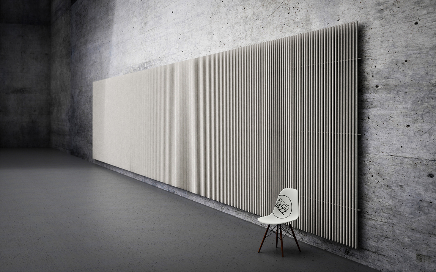 EchoBaffle® WALL er en nyutviklet veggabsorbent med tredimensjonale lameller som kommer til live når du går forbi. Ved å endre visningsvinkler endres utseendet. Fantastisk effektiv på lange vegger eller i korridorer.