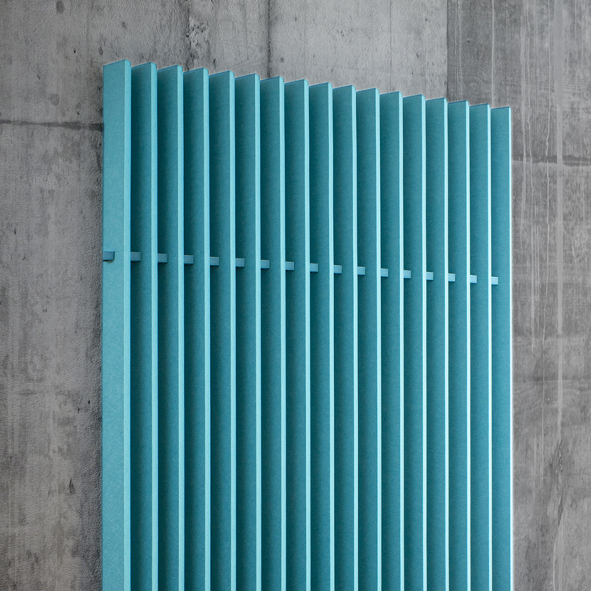 EchoBaffle® WALL er en nyutviklet veggabsorbent med tredimensjonale lameller som kommer til live når du går forbi. Ved å endre visningsvinkler endres utseendet. Fantastisk effektiv på lange vegger eller i korridorer.