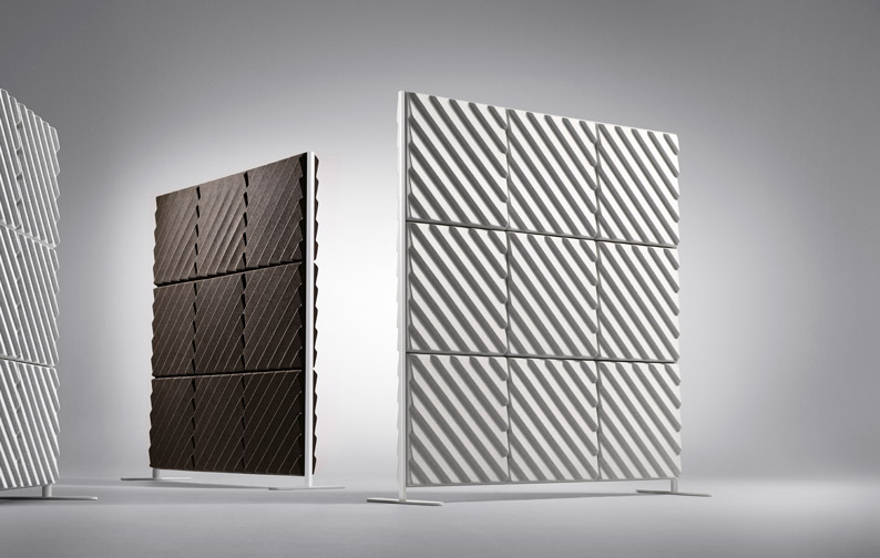 Akustikk er et aspekt innen innredning som ofte glemmes. Når kontorrom vokser og veggene i våre hjem blir bare, øker behovet for produkter som absorberer lyd. Lyd kan påvirke vår helse, øke vårt  stressnivå og redusere vår kreativitet. For å imøtekomme dette problemer har vi skapt Soundwave, lydpaneler som har satt standarden på markedet siden 2002. Soundwave finnes i 14 ulike design og noen forskjellige størrelser, med ulike egenskaper. Lydpanelene består av formpresset polyesterfiber, utenom Swell som består av 100% PET. Kan fås med tilbehør som basfill til alle panelene (utenom til Luna og Pix) – som forbedrer lydabsorpsjonen i de lave frekvensene.
