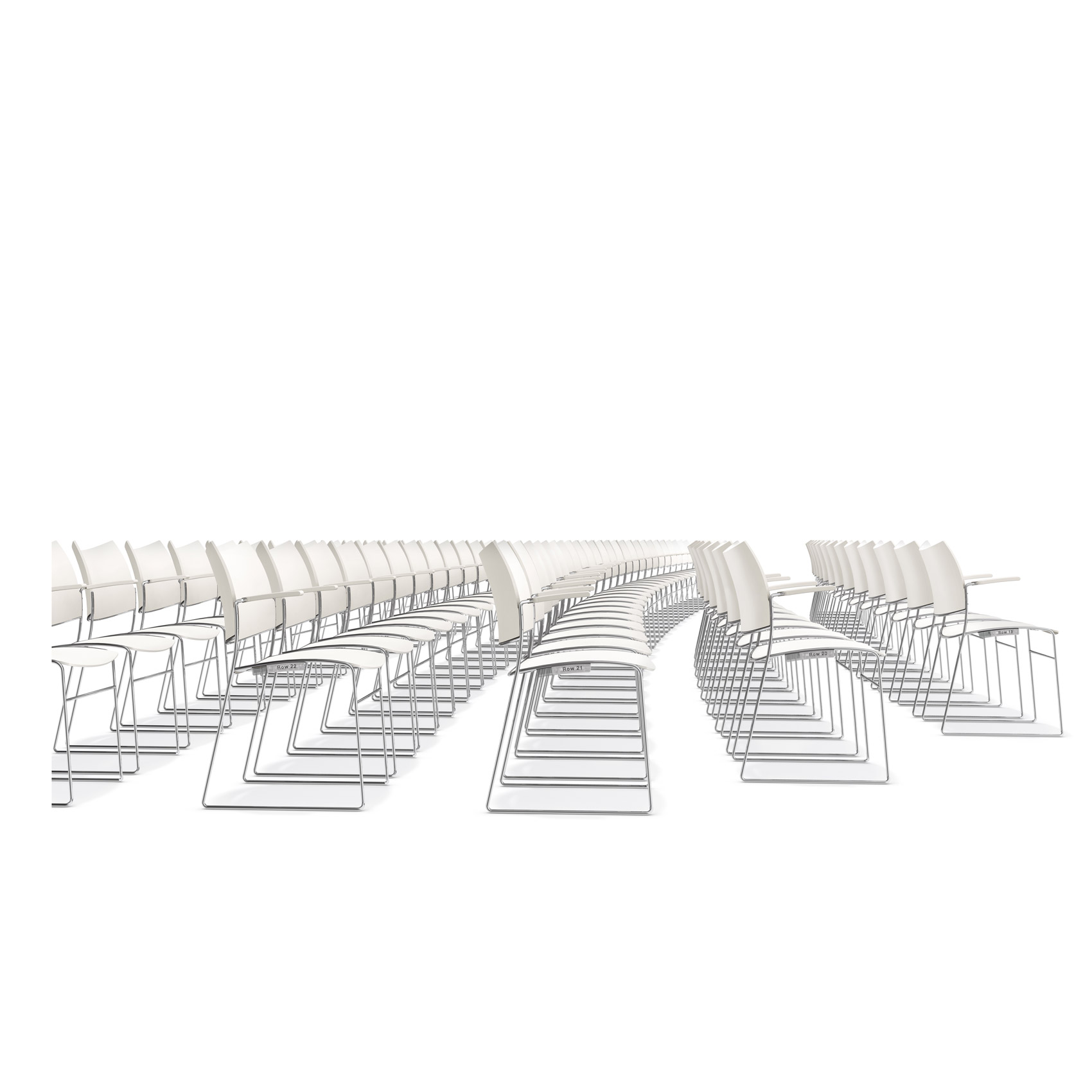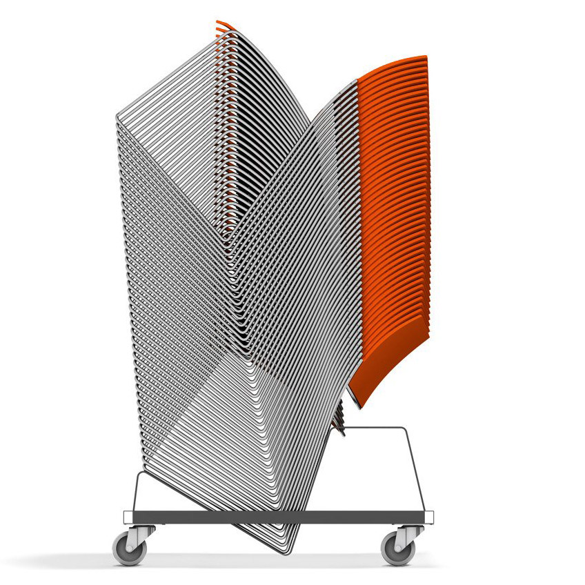 Curvy stabler 45 stoler på bare 0,6 m2 med tilhørende stoltralle. Selv om stolen har armlener eller om den er polstret kan en transporttralle alltid ha 32 stablede stoler.