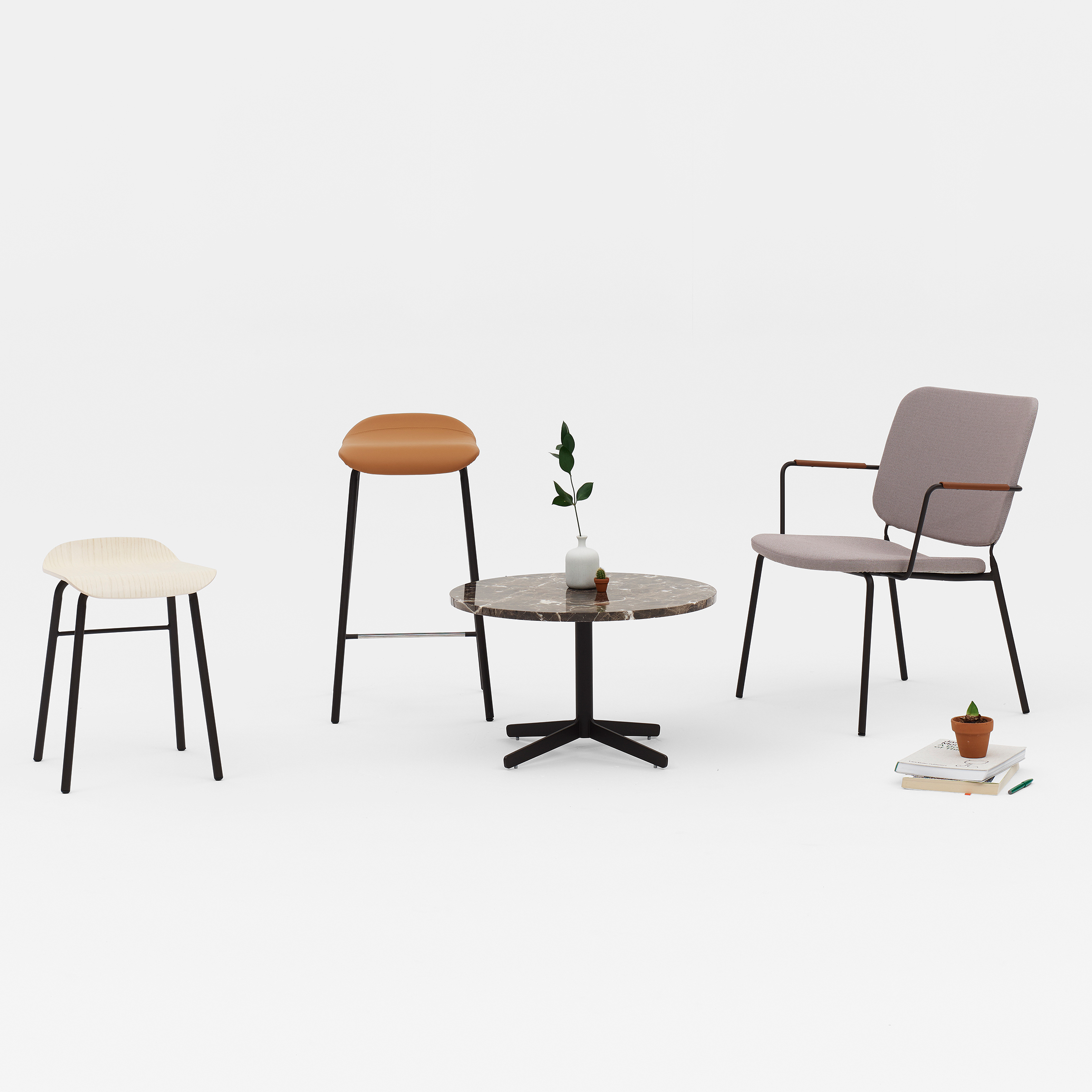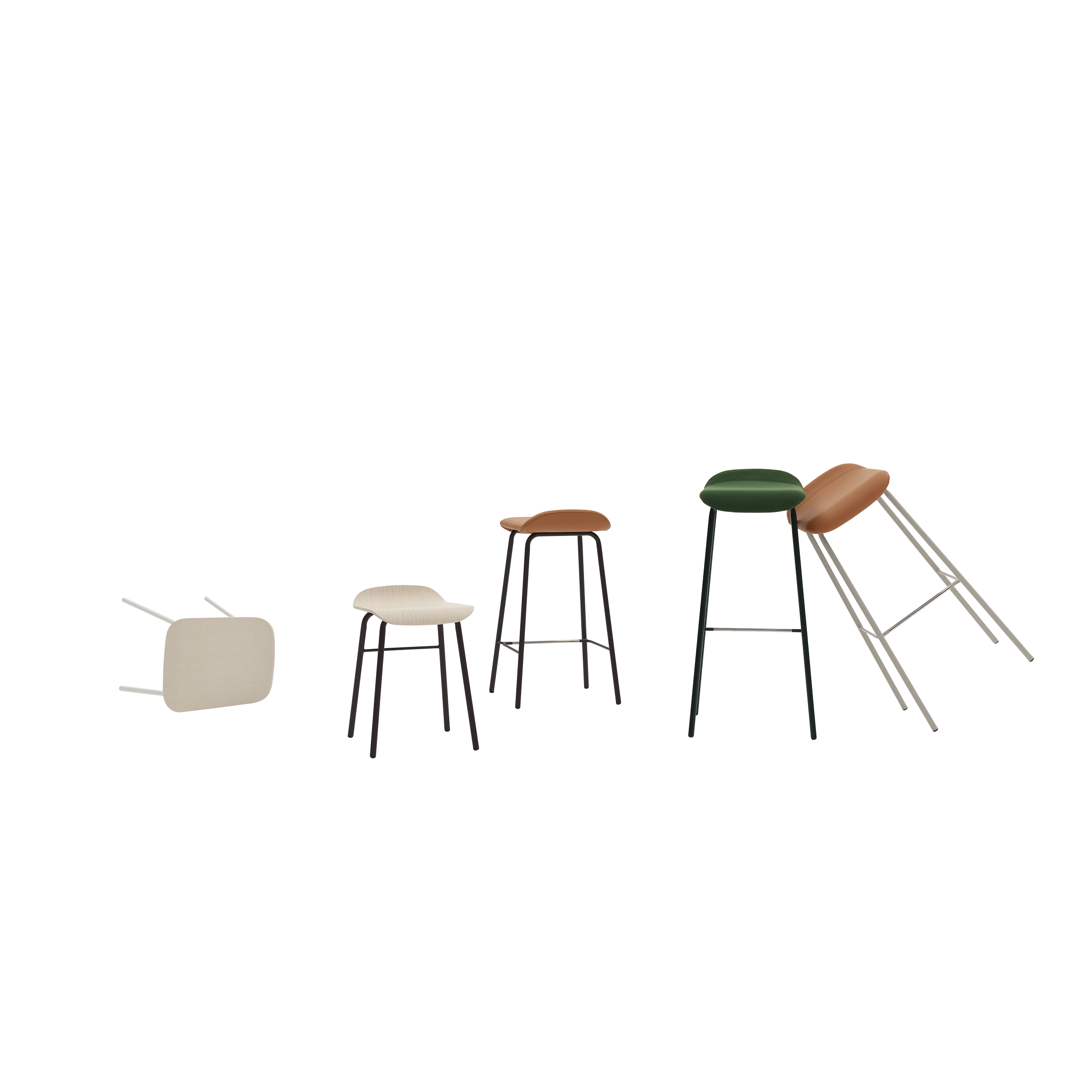 En stille stol med karakter. Feather er designet av Jens Fager sammen med ledende produktutviklere/ingeniører. Sammen har de skapt en stol som tilfredsstiller høye krav til både komfort og kvalitet. Feather passer i ulike miljøer; konferanse, restaurant, kontor, skole og til og med hjemme. En stille stol med karakter som du kan velge i mange ulike utførelser. Navnet Feather spiller på letthet og polstring. Innfestingen av ryggen gir en polstret effekt og en svært behagelig sittekomfort. Krakken fås i tre høyder: 46, 65 og 80 cm. Formpresset sete i bjørk, eik, sortbeiset eik, hvitbeiset ask eller tekstilkledd. Understell i hvitt, sort, silver og krom. Fotstøtte er alltid i krom utførelse.