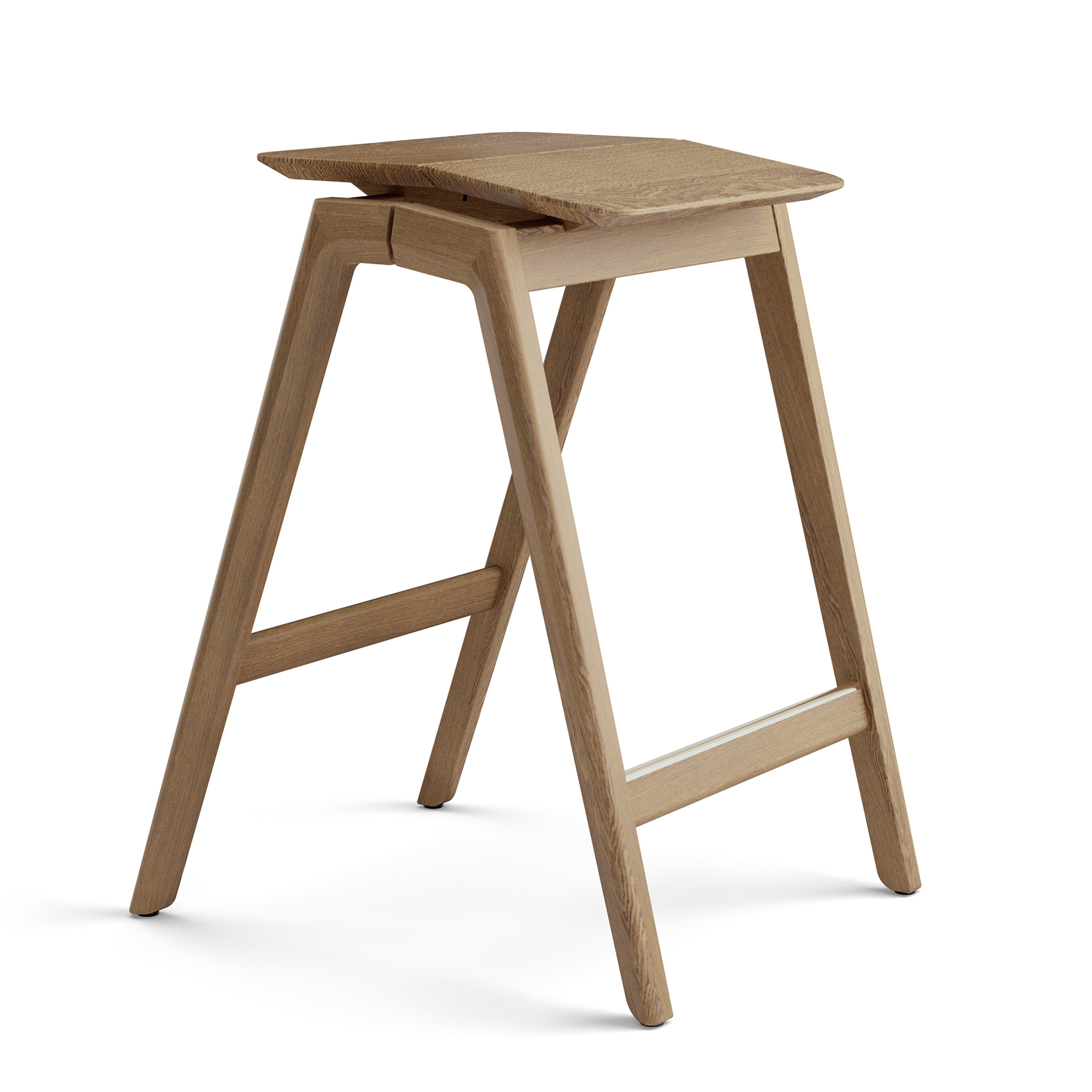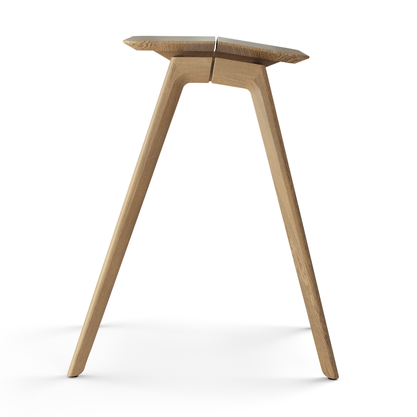 Samspill og funksjon møter nordisk minimalisme. Den subtile knekken i setet inviterer til fremtidens prosesser – med både tilbakeholden tenking og fremoverlent interaksjon. Knekk er designet av studenten Jon Fauske og formidler Fora Form sine verdier på en ung og overraskende måte.