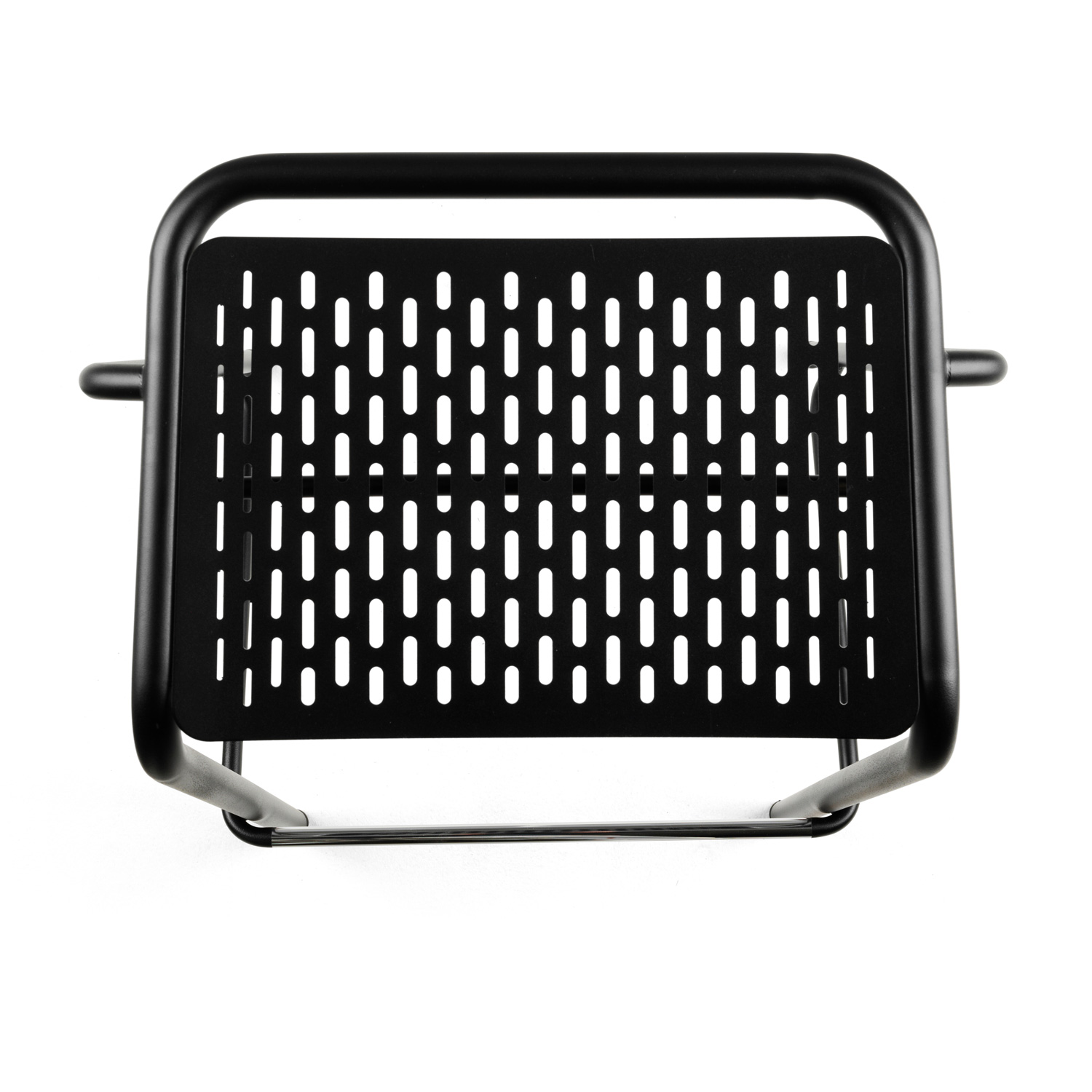 Sete i 3 mm perforert stål – vendbar pute i ulike typer tekstil/skinn kan festes med borrelås og kommer som tilvalg.