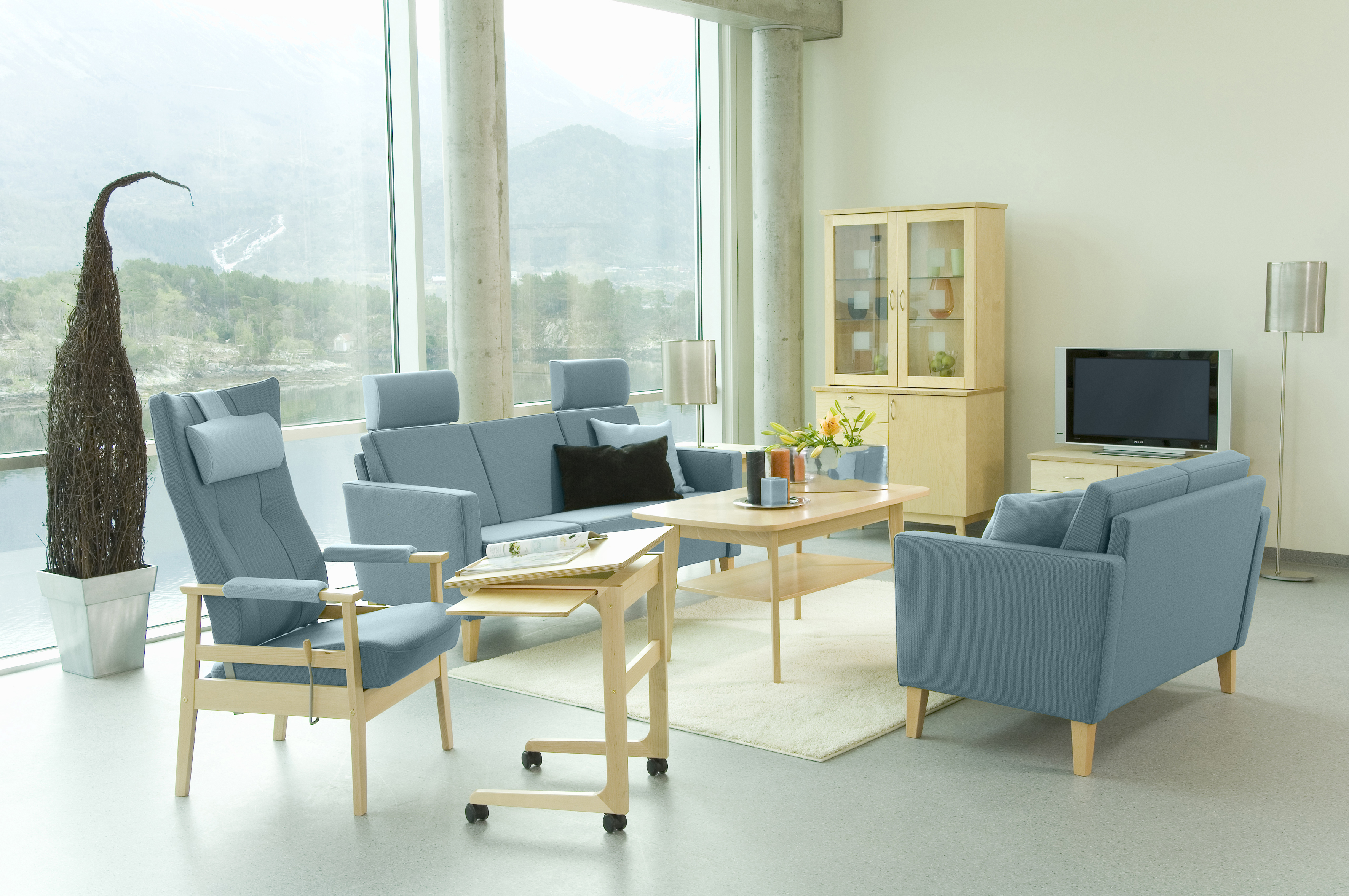 Bo leveres som 1-seter, 2-seter, 3-seter, høyryggede stoler og spisestol. Treverk i bjørk natur eller beiset i Hellands standard beisvarianter. Tilhørende bord: Pan salongbord