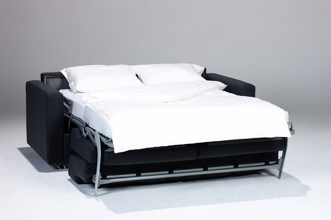 Saga er et rimelig alternativ. Gjør sofa til seng i en enkel bevegelse uten å fjerne puter. 14cm høy bonellfjærmadrass med liggemål 140×200/160x200cm. Saga fåes også i kombinasjon sjeselong.