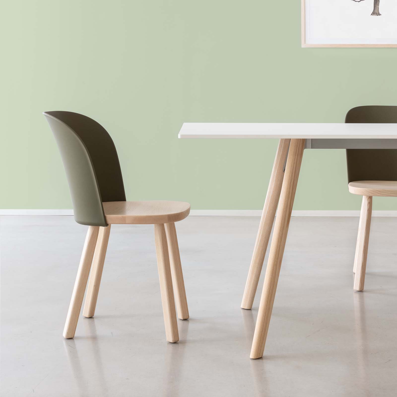 Alpina er inspirert av en klassisk modell fra alpemøbeltradisjonen, som er kjent for sitt enkle design og multifunksjonelle bruksområder. Stolen er elegant, allsidig, og i stand til å tilpasse seg både tradisjonelle og mer moderne miljøer.