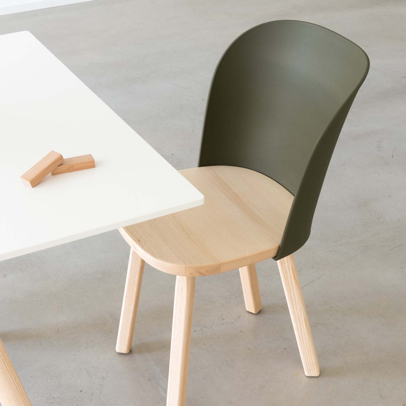 Materialet i ryggstøtten er støpt i biobasert polypropylen som kommer 100% fra avfall av organisk matolje og for produksjonen er det en reduksjon av co2 avtrykket på opptil 80%.