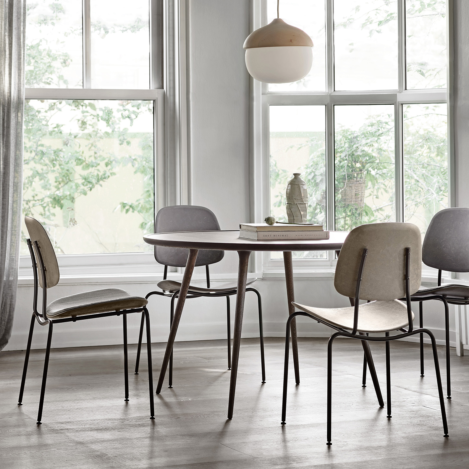 Compound Dining Chair kan stables med opptil åtte stoler uten polstring og fire stoler med polstring.