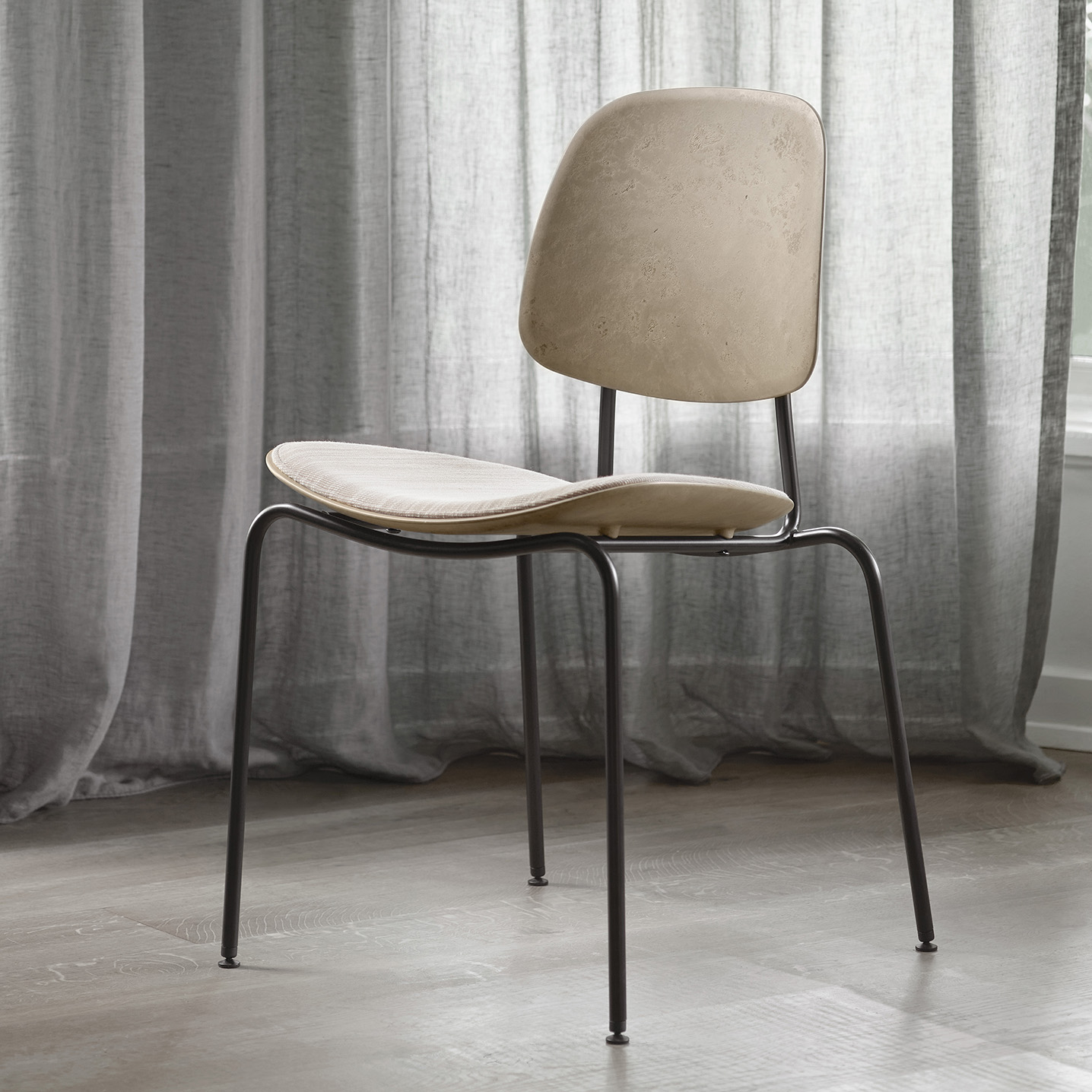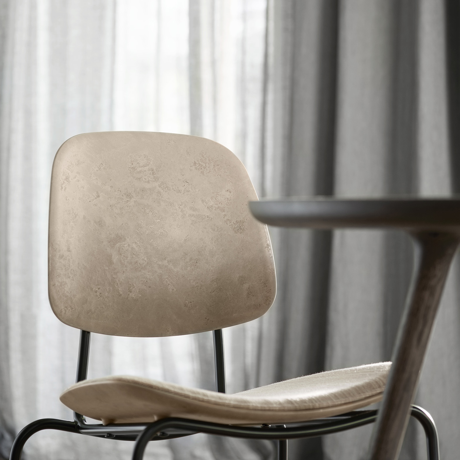 Compound Dining Chair designet av OEO Studio er laget med en ramme av 20 % resirkulert stål og et sete og rygg i Matek®. Det minimalistiske designet og suverene komforten gjør The Compound Chair egnet for både privat og offentlig bruk.