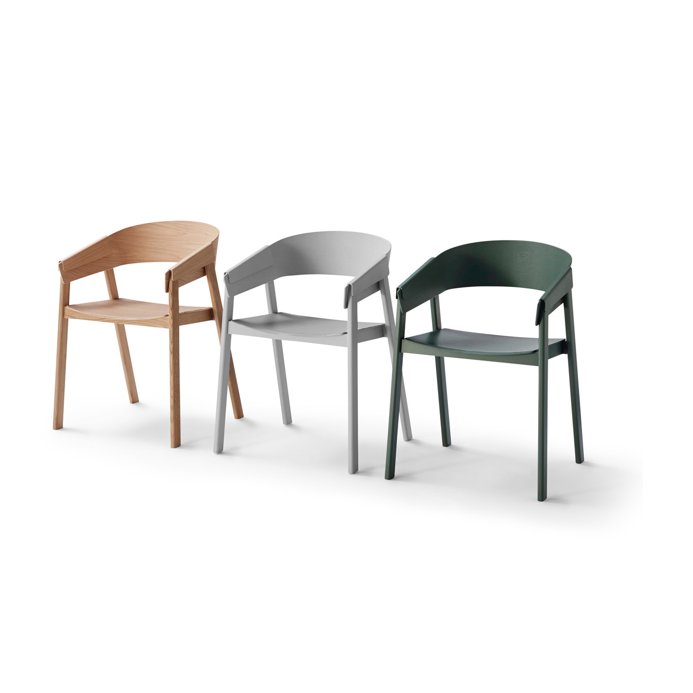 Designeren Thomas Bentzen har designet en moderne nytolkning av den klassiske trelenestolen og har gir et nytt perspektiv til et tradisjonelt nordiske møbel. Cover har et avrundet skall i formpressetfinér og fire sterke treben som gir stolen et solid og jordnært uttrykk. Stolen er lett og du sitter utrolig godt i den! Farger: Eik, sort, mørk grønn, grå, mørk grå eller rød. Kan også fås med fast setepute.