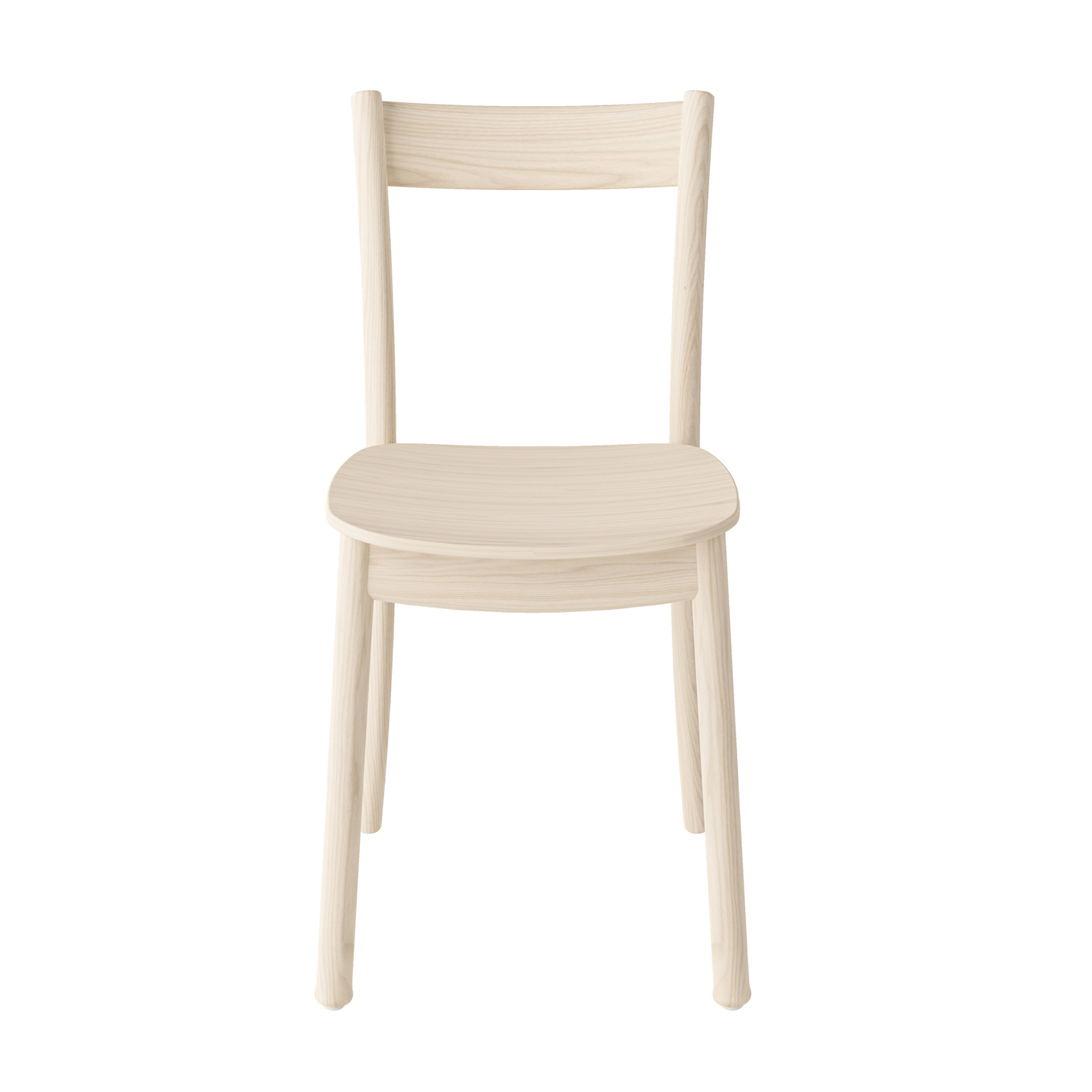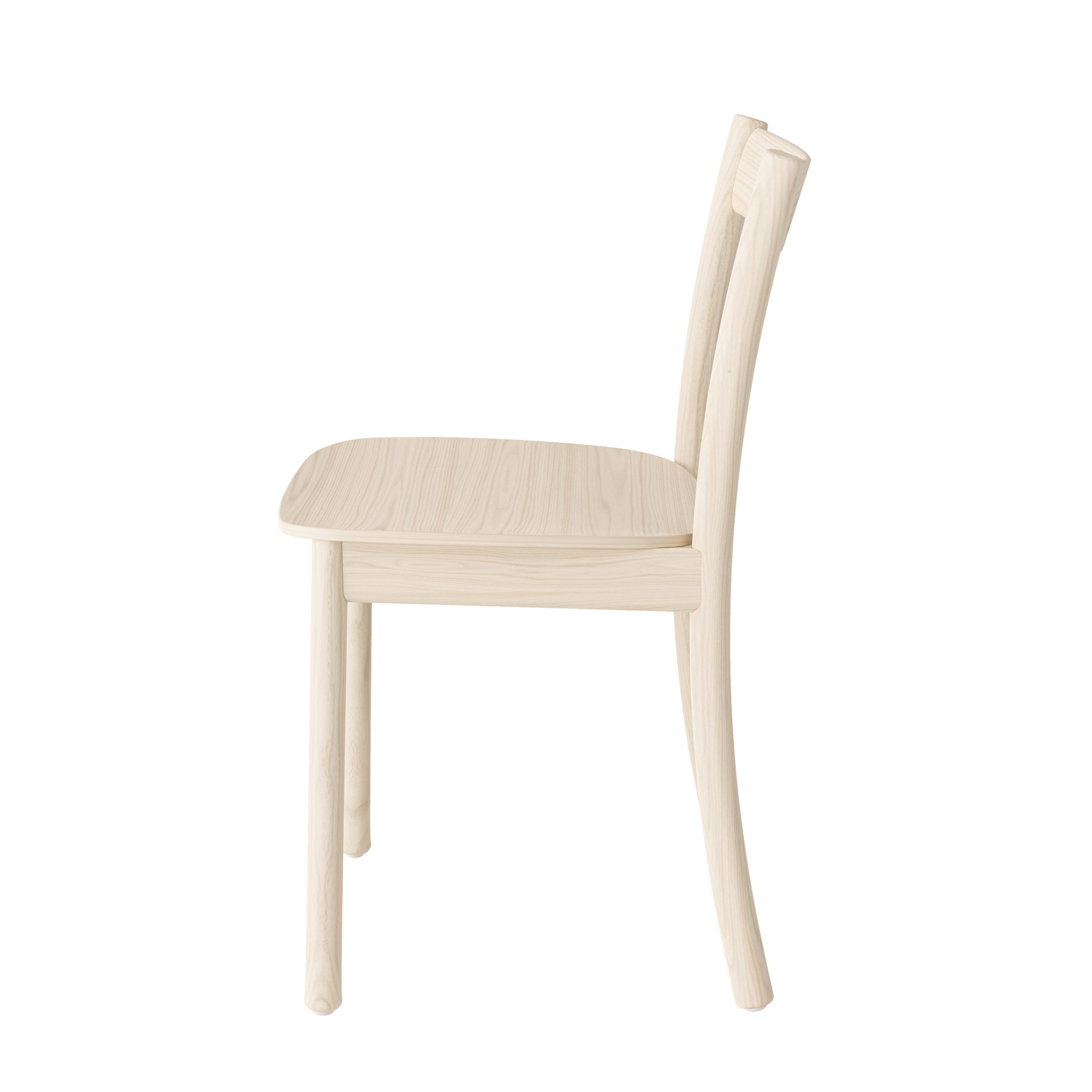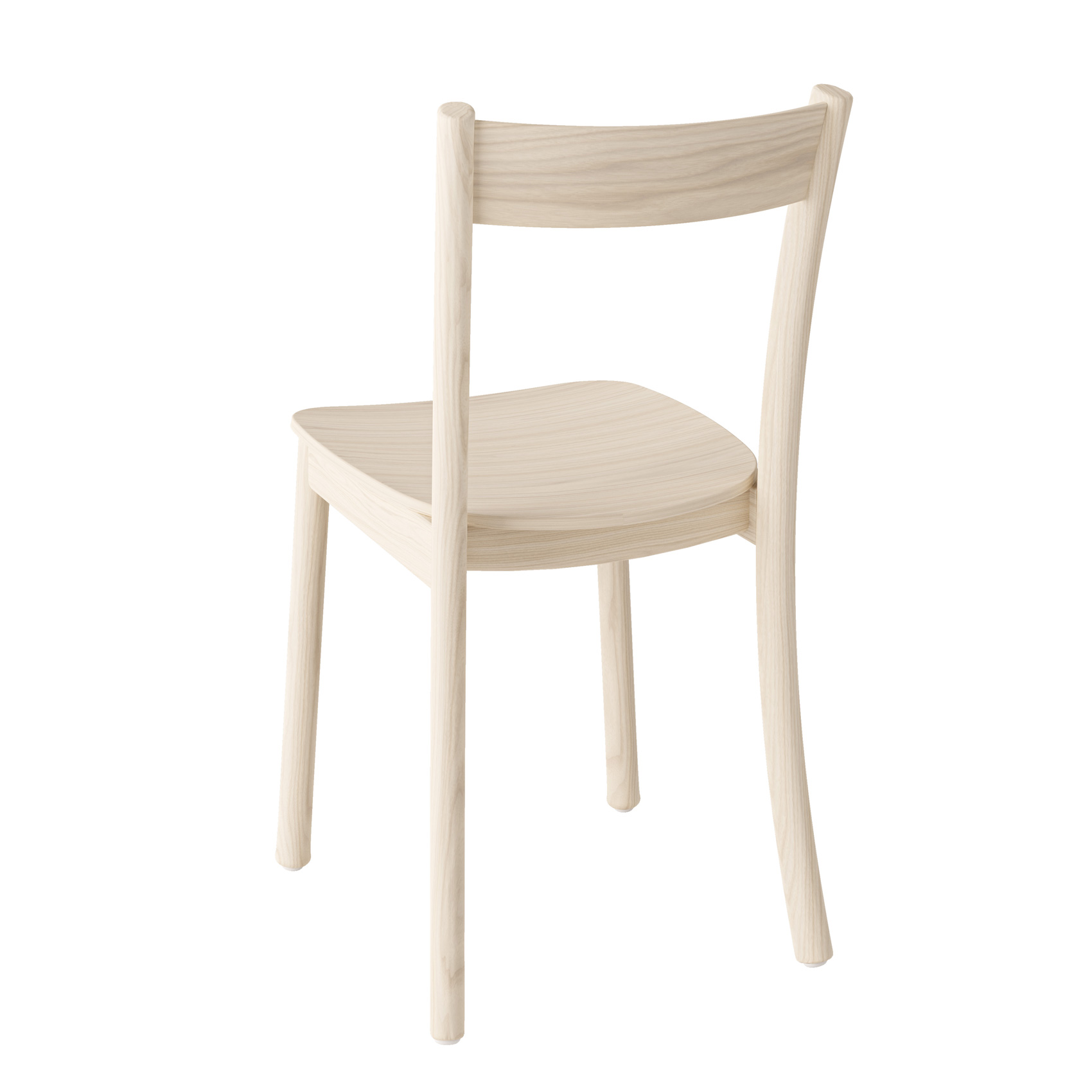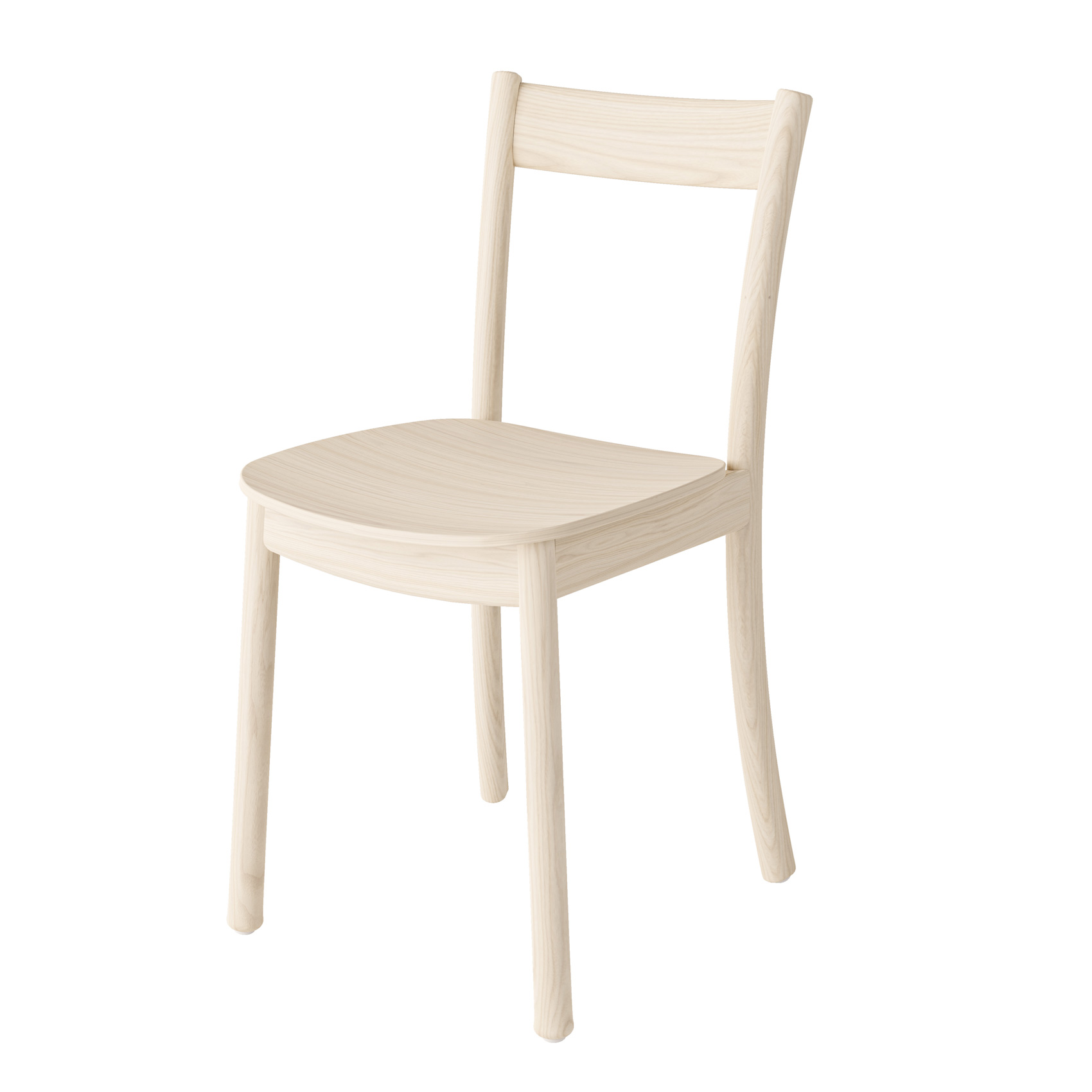 Stolens sete består av formpresset finér og fargevalget er eik natur, ask hvitpigment og sortbeis.