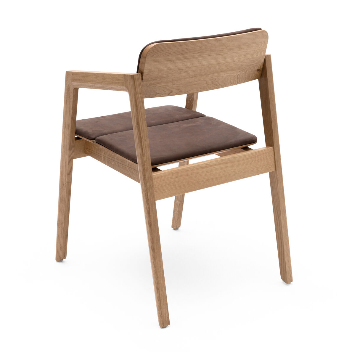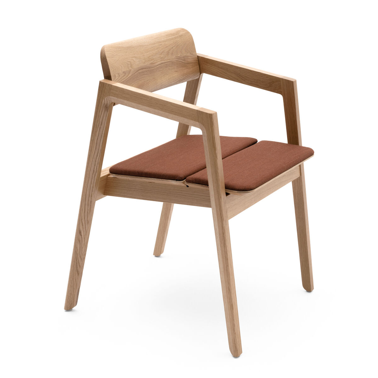 Knekk er helt enkelt stil og funksjonalitet i ett og noe så unikt som en stol tversgjennom i heltre. Kan også leveres med setebrikke i sete og/eller rygg for ytterligere komfort. Stol uten armlene kan stables.