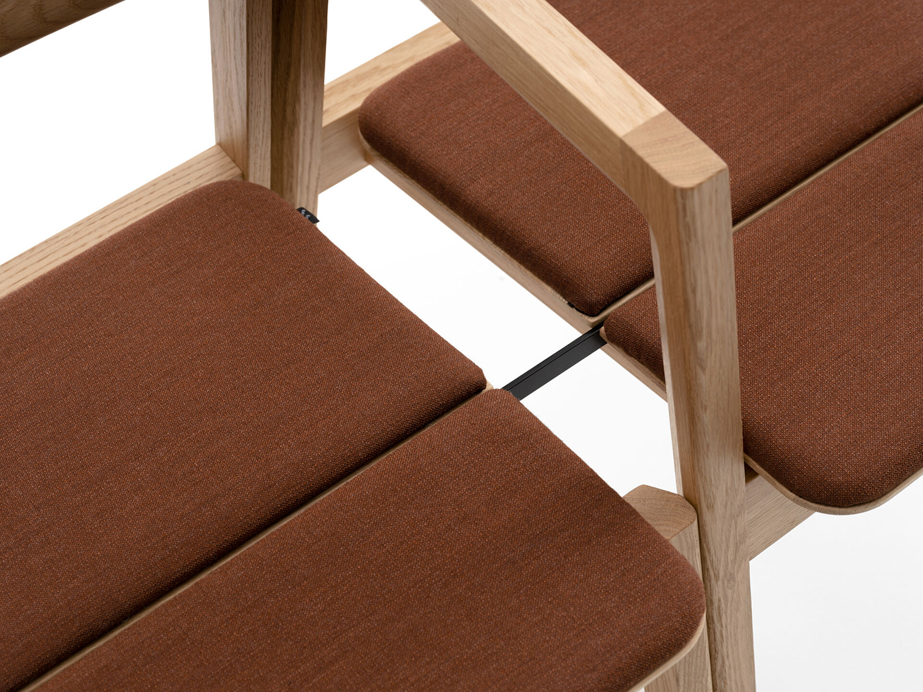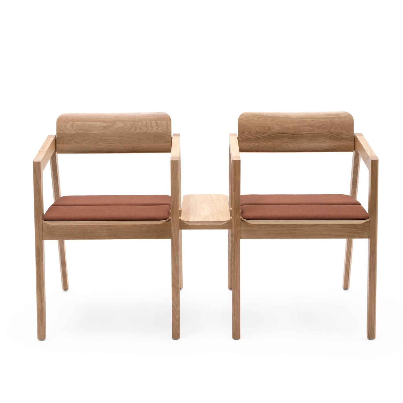 Med sin subtile knekk skaper Knekk stolen både rom for tilbakelent refleksjon og fremoverlent diskusjon. Stolen kommer både med og uten armlener og har et elegant utrykk.