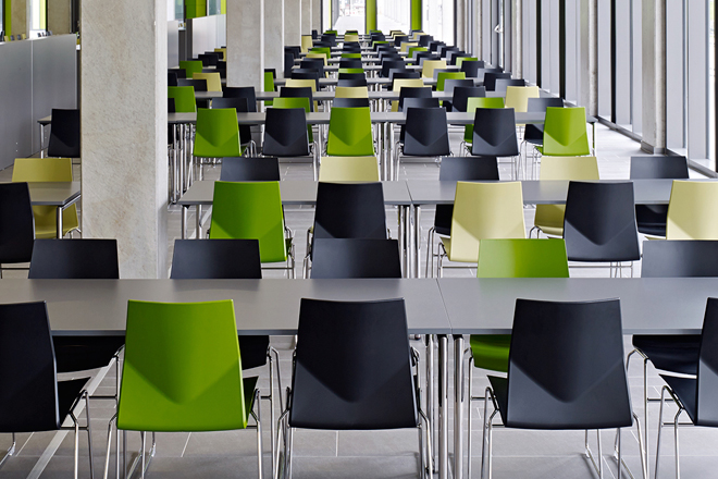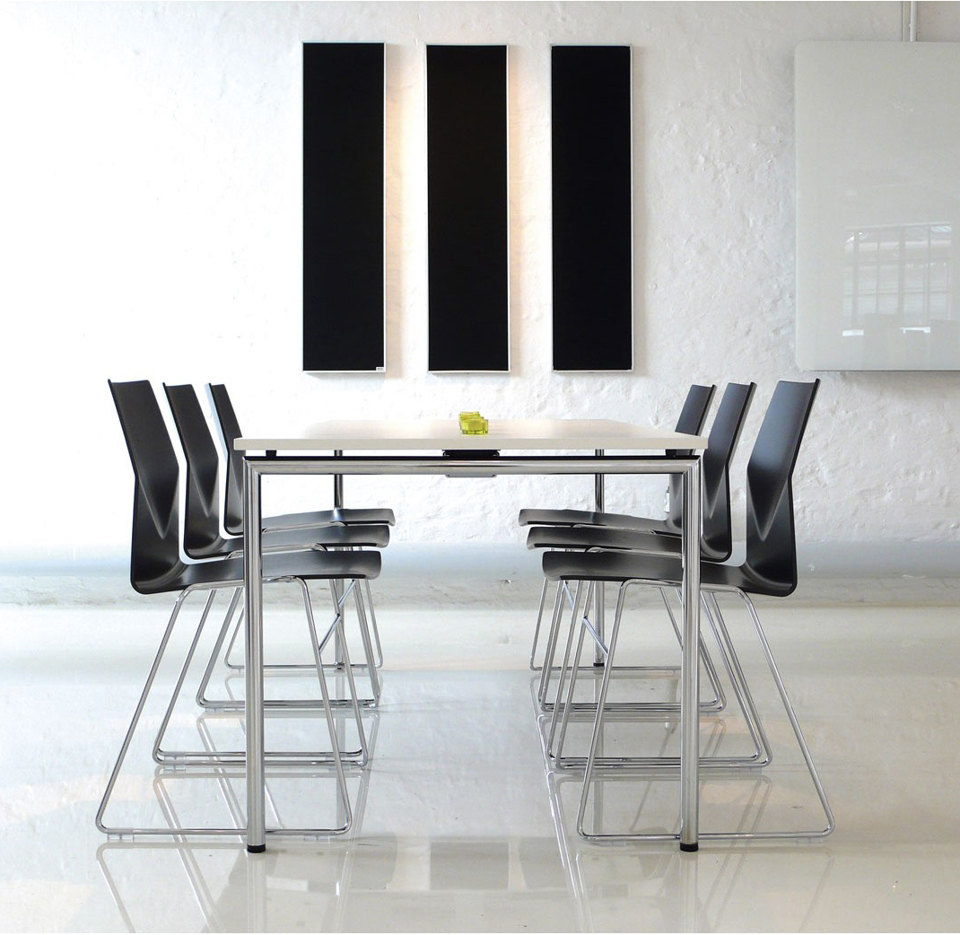 Four Cast ‘2 Four (fire ben) og Four Cast ‘2 Line (meier) er lette og har et komfortabelt svikt i ryggen. Stolen har bestått de strengeste tester og er velegnet til bruk også i harde miljøer. Velg mellom enormt mange kombinasjonsmuligheter, som blant annet består av: armlener, koblingsbeslag, akustikkdemping, sete- og fullpolstring. Velger man polstring og ønsker å stable stolen, påsettes en «boks» under setet, som beskytter setet mot merker når den stables. Stolen er fremstilt helt uten bruk av skruer, noe som gjør den mer miljøvennlig og raskere og billigere å fremstille. Line-versjonen fås med teflonglidere på benene som gjør den nesten lydløs og lett glidbar på gulvet. Stolen kan velges med kunststoffskall, i 8 forskjellige farger eller med skall i eik finér. Understellet kan velges i sort, stengrå, hvit eller krom og stolen fås både med og uten armlen. Stolen stabler tett. Four Cast´2 Four/Line fås med en praktisk Inno®note, som er klappbar i kompakt laminat. Perfekt til en bærbar pc eller en notatblokk. Kan også leveres iht. NORSOK-standard.