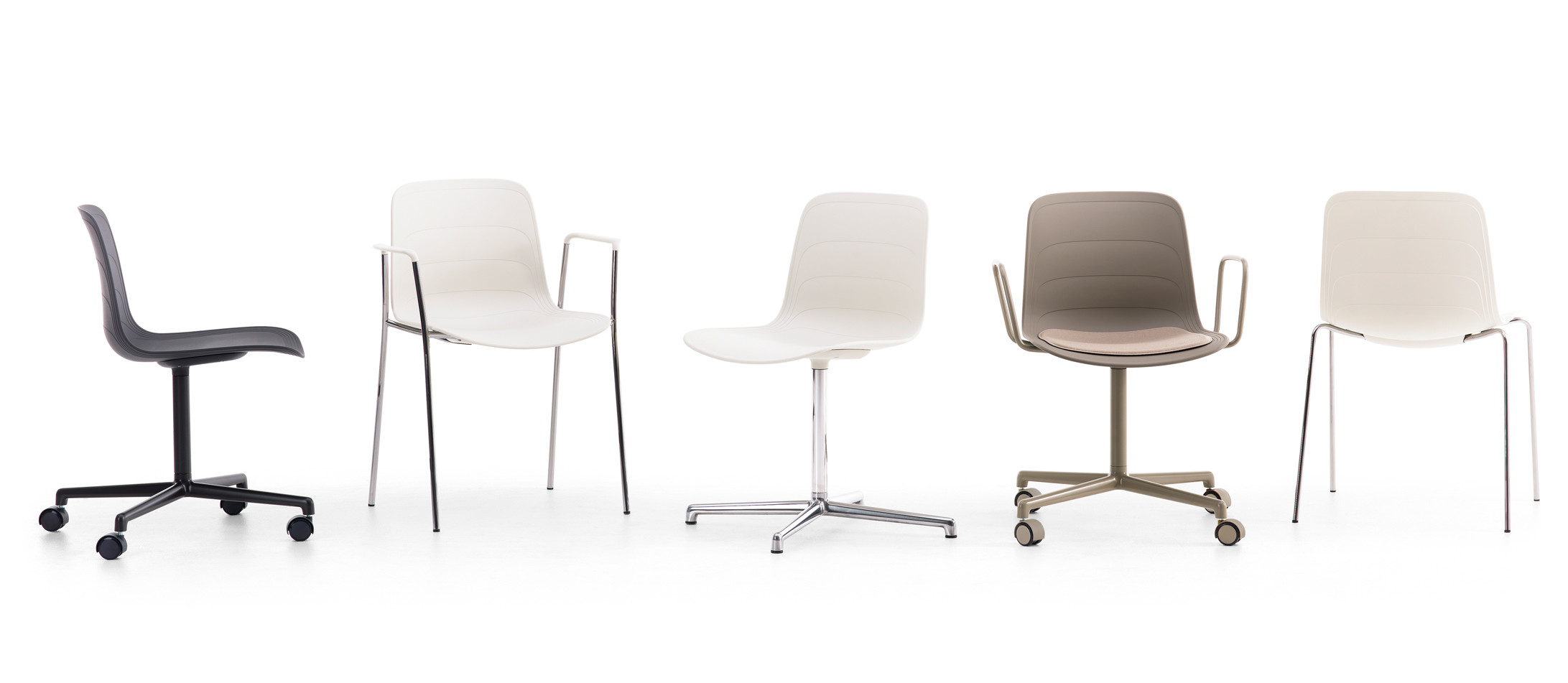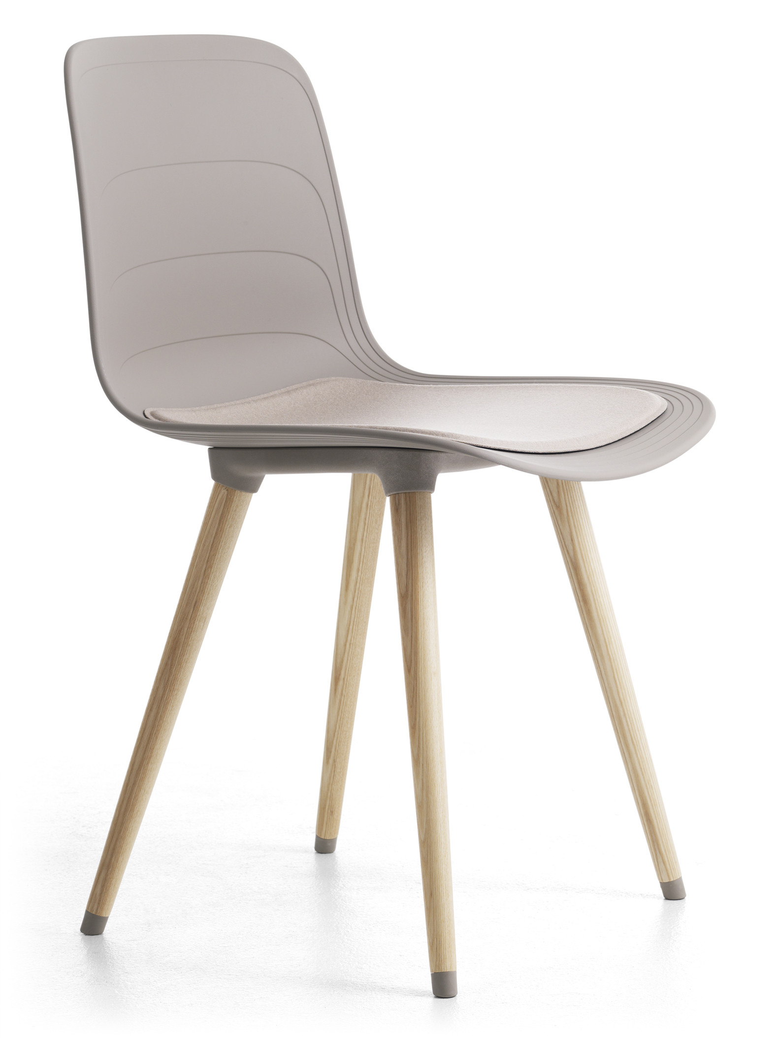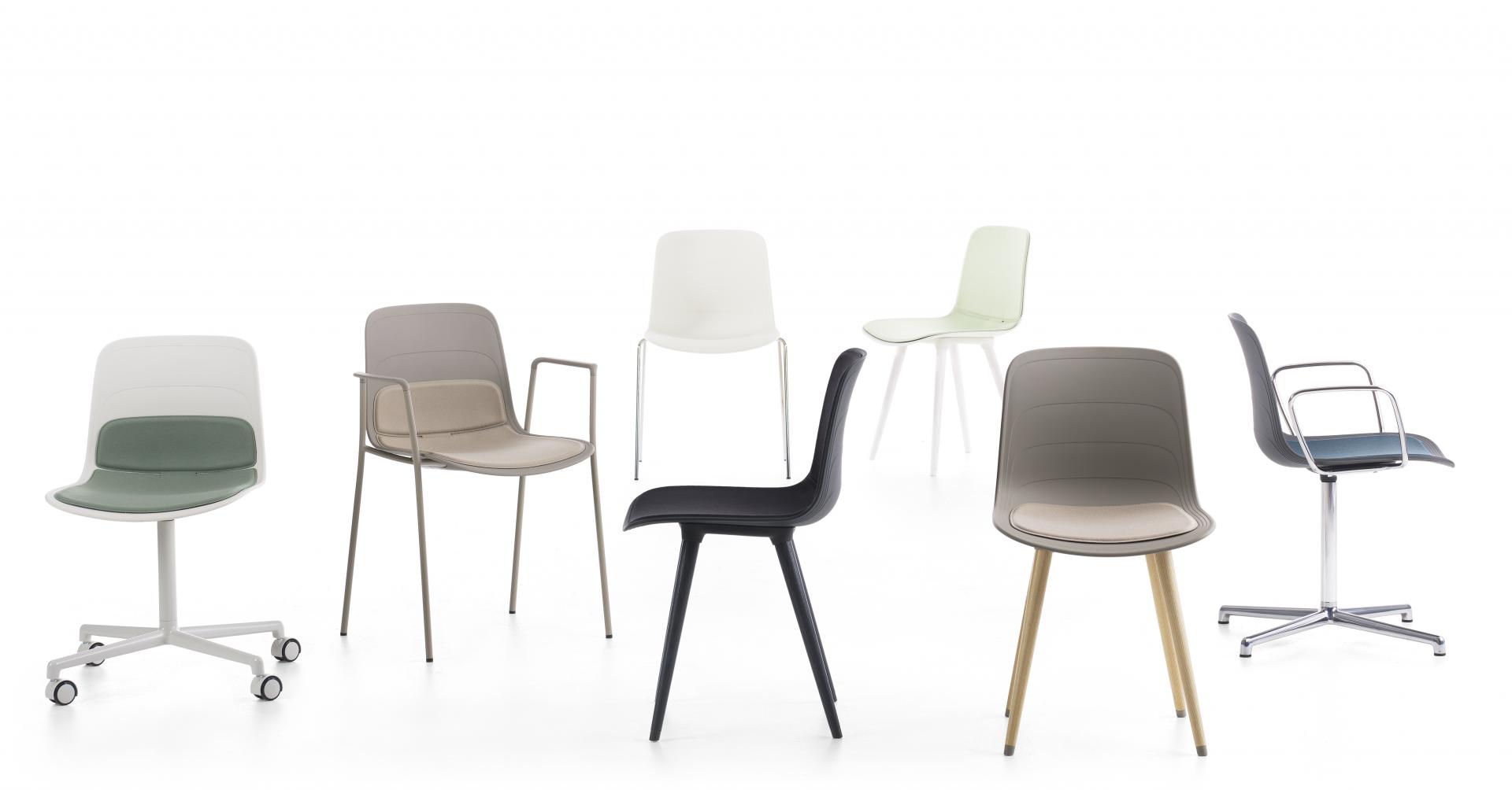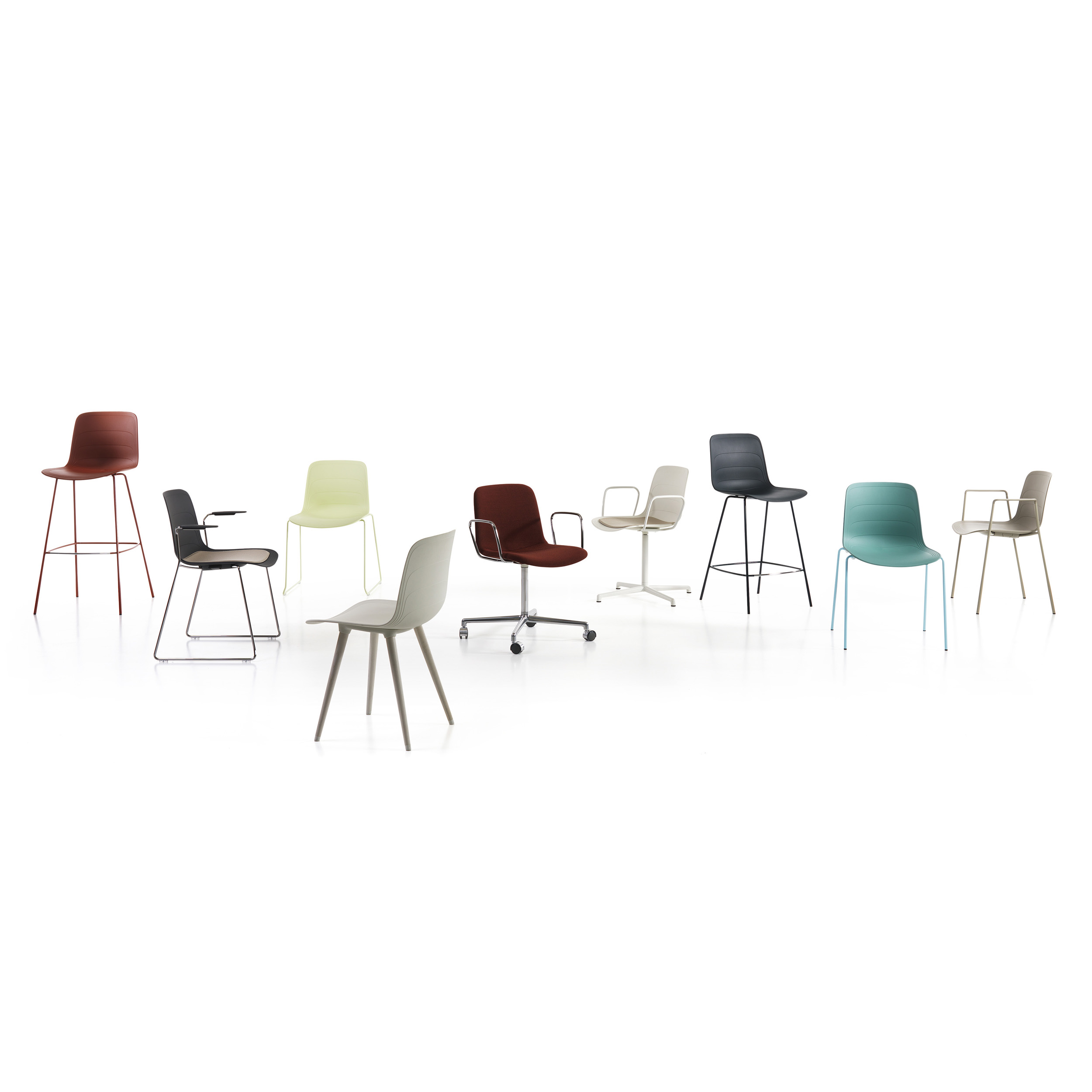 Stolen har seteskall i formstøpt glassfiberarmert polypropylen i fargene hvit, beige, grafitt, blågrønn, pistasje, sortgrønn og mørkrød. Ved lakkerte ben/stativ følger fargen på stativet fargen på seteskallet. Seteputer som tilvalg. Stolen har disse alternativene på ben/stativ: