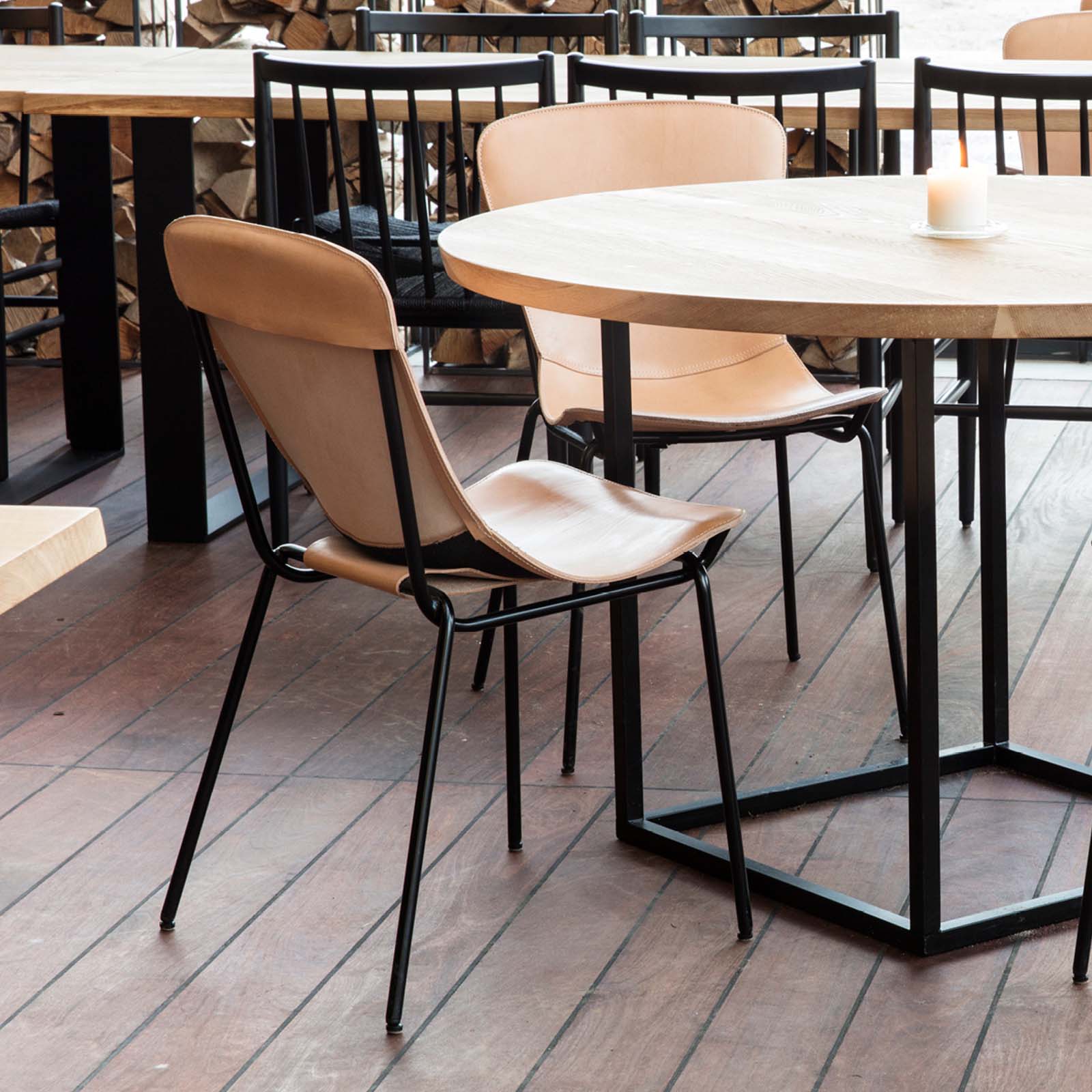 Den tradisjonelle skallstolen var utgangspunktet for utformingen av Hammock-stolen. Ambisjonen var å lage en stol som var like enkel som en vanlig skallstol, men med et dynamisk skall som følger kroppens bevegelser, tilpasser seg ulike sitteposisjoner og gir god komfort til tross for sin enkelhet. Sete og rygg består av tykt vegetabilsk garvet lær. Læret er hengt på den enkle stålrørkonstruksjonen. Læret formes av brukerne, eldes over tid og får en vakker naturlig patina som bare blir bedre og bedre jo mer stolen brukes.