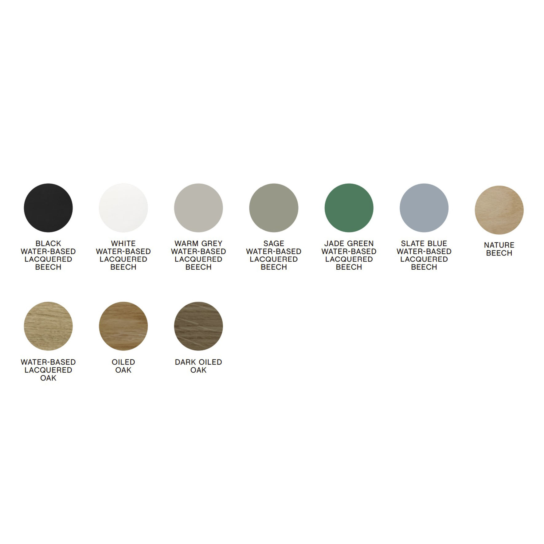 Bøk: black, jade green, sage, slate blue, warm grey, white, nature