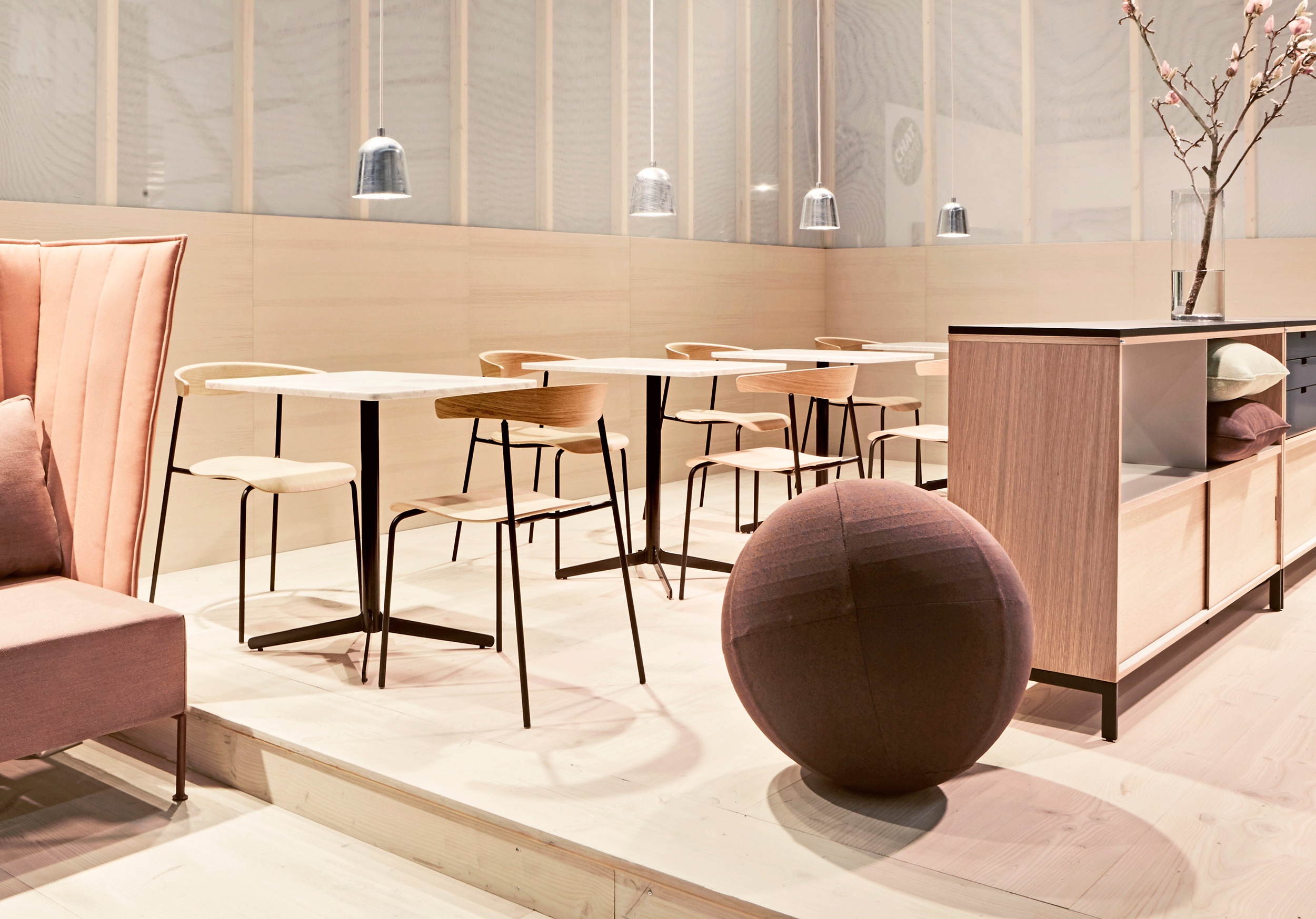 Hug chair er perfekt for enhver anledning, enhver person og ethvert sted. Komfort, tilgjengelig og funksjon – utfordringen har vært å jobbe med presset finér for å skape dristige kurver med høy komfort, samtidig som man skulle beholde de rene linjene og styrken av materialet. Stolen stabler lett og kan leveres med bordoppheng for å lette renhold, og gjøre hverdagen enklere.