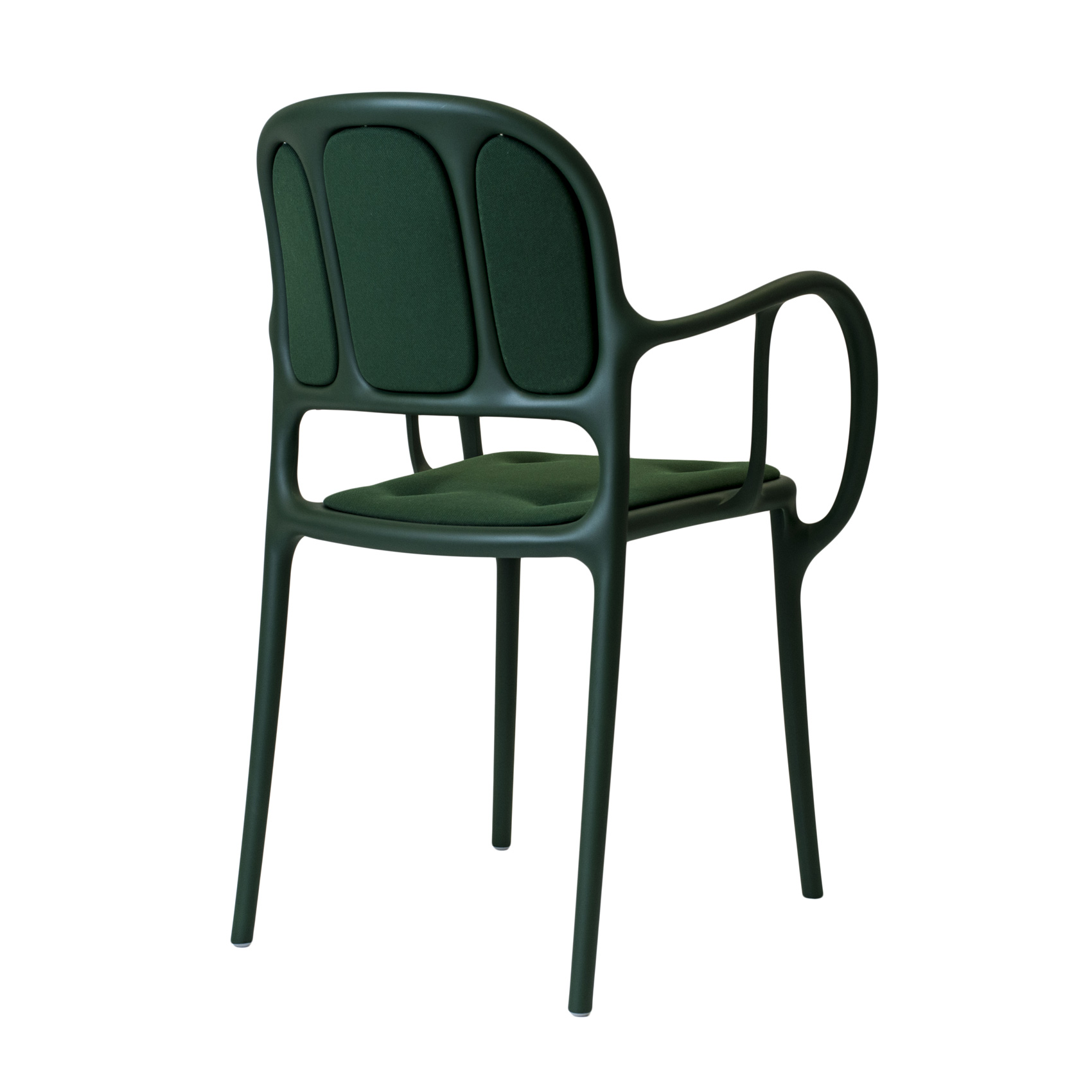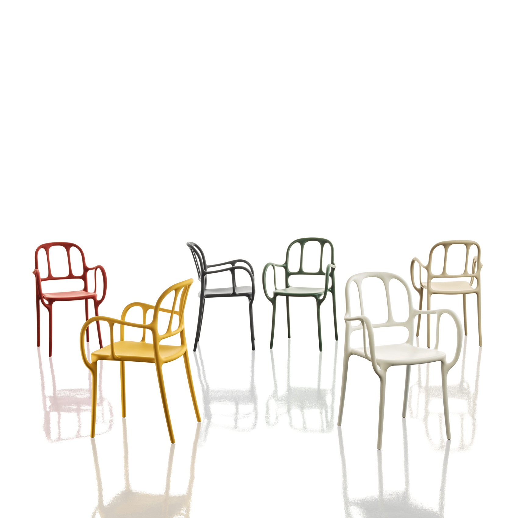 Milà er en elegant og sofistikert stabelbar stol med armlener i helstøpt polypropylen med glassfiber forsterkning. Stolen har helt klare referanser til Gaudí sine verk i Barcelona, med det markante buede formspråket i stolen. Ideen bak stolen var å lage noe i plast som ikke var mulig å lage i tre, men allikevel oppnå et sofistikert formspråk. Den har en overflate som gir den en silkemyk følelse. Stolen er allikevel robust og passer godt til bruk i kantiner, skoler, restauranter og andre sosiale soner i et kontor. Stolen er stablebar og egner seg godt for utendørsbruk. Kommer i versjoner med setepute, eller med sete- og ryggpute, eller helt uten polstring.