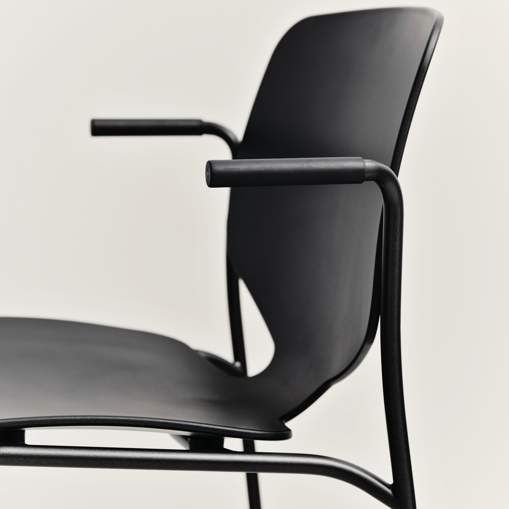 Nova Sea stol setter nye standarder for bærekraftig stoldesign. Setet er laget av 96 % resirkulerte fiskegarn, noe som betyr at hver Nova Sea stol som selges, fjerner 2,75 kg kasserte fiskegarn fra havet.