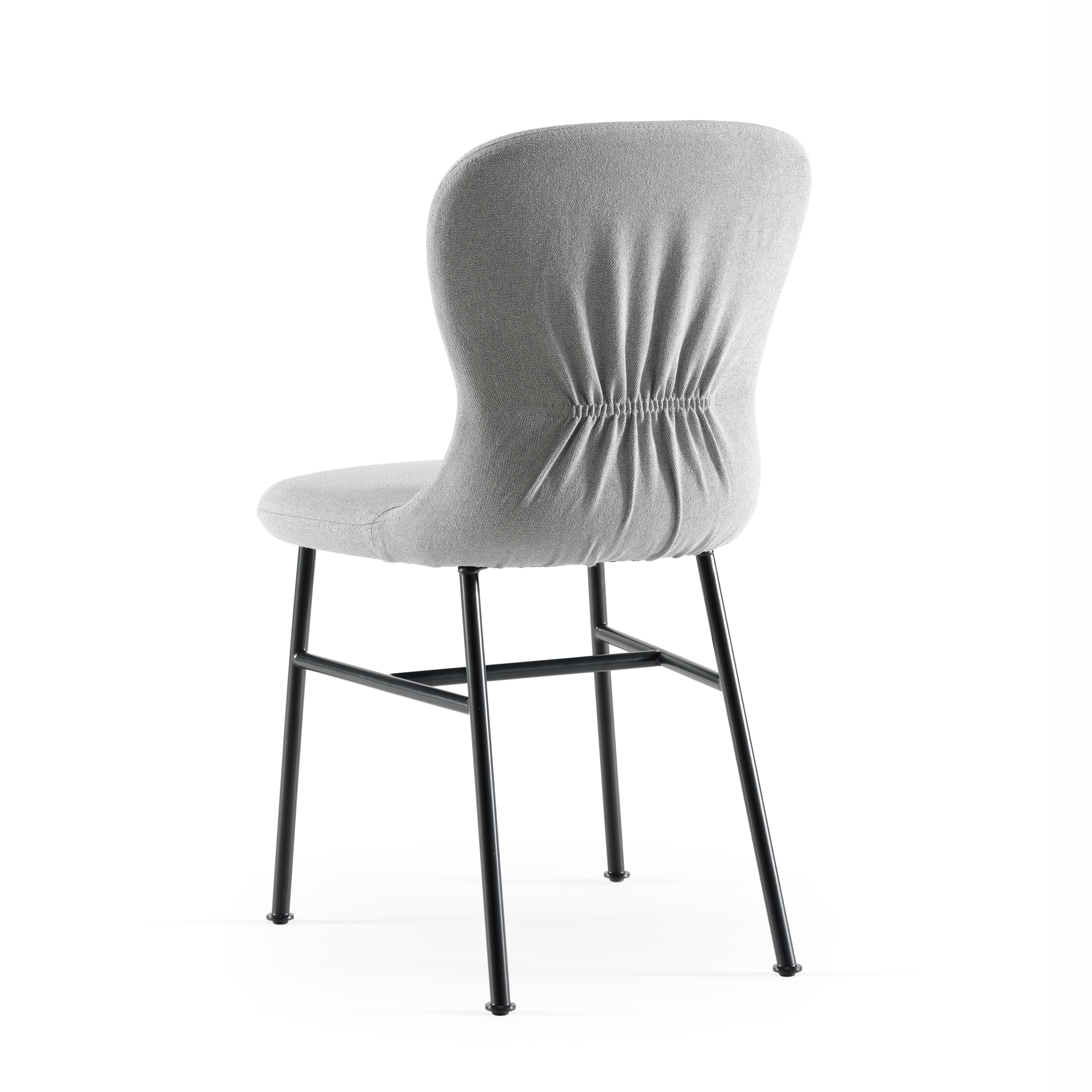 Materialer i formskåret kallskum, med ben i metall eller tre.  Velg mellom polstring i lær, stoff eller en kombinasjon. Ben lakkert i 5 standard RAL-farger. Understell i eik kan beises i 7 standarfarger.