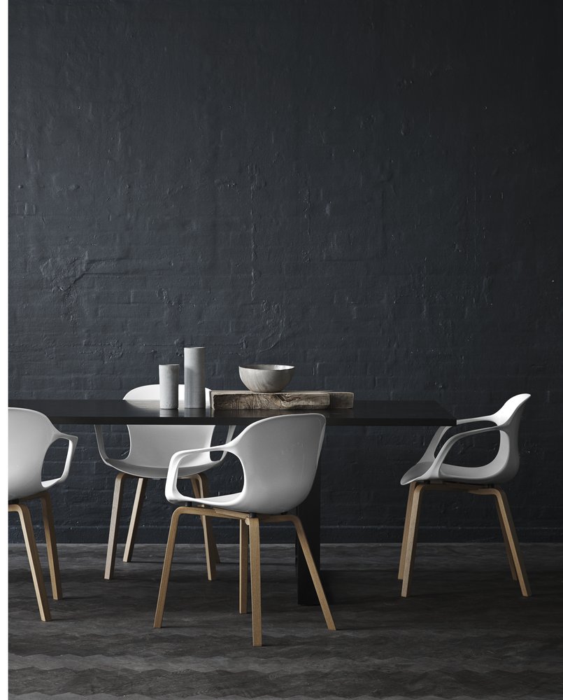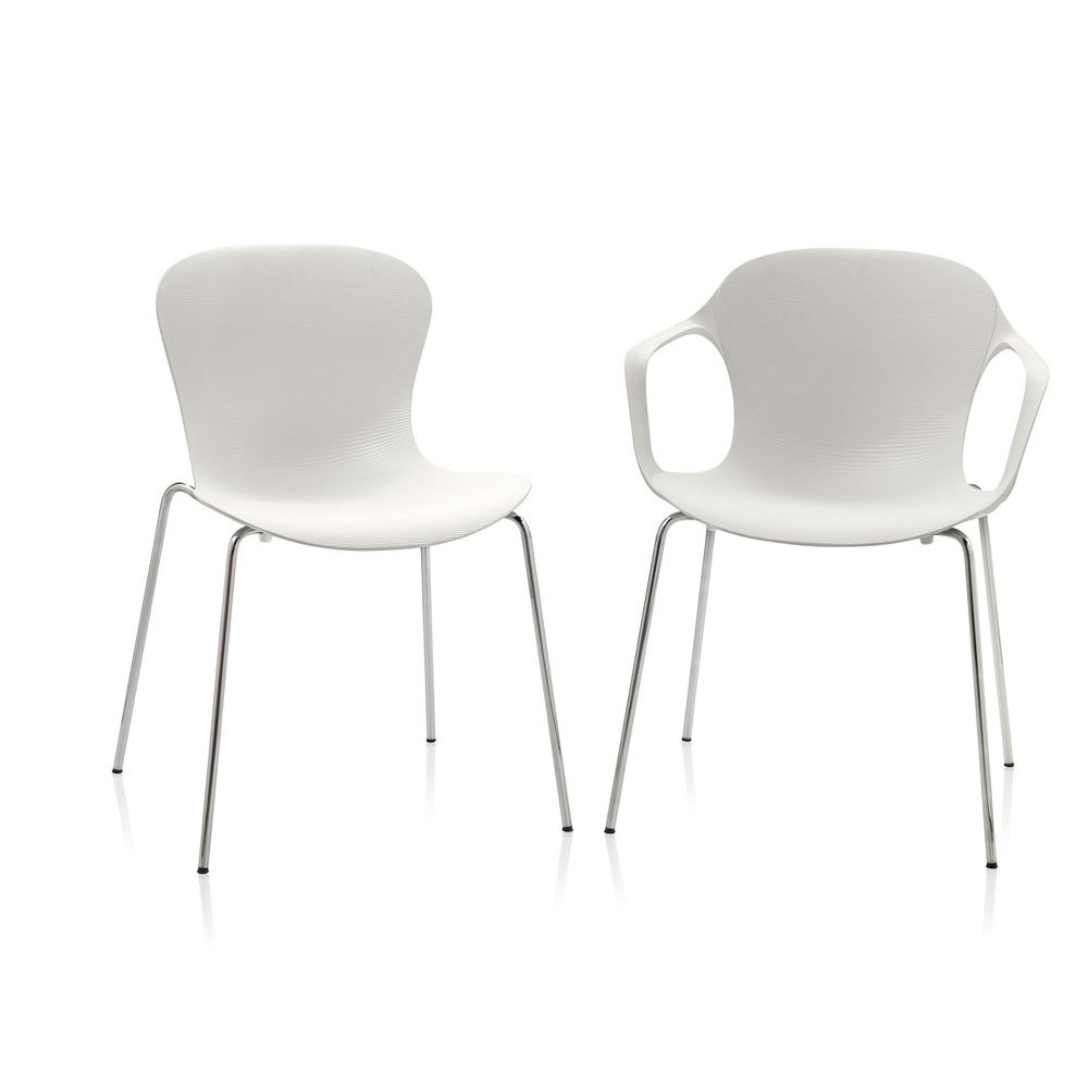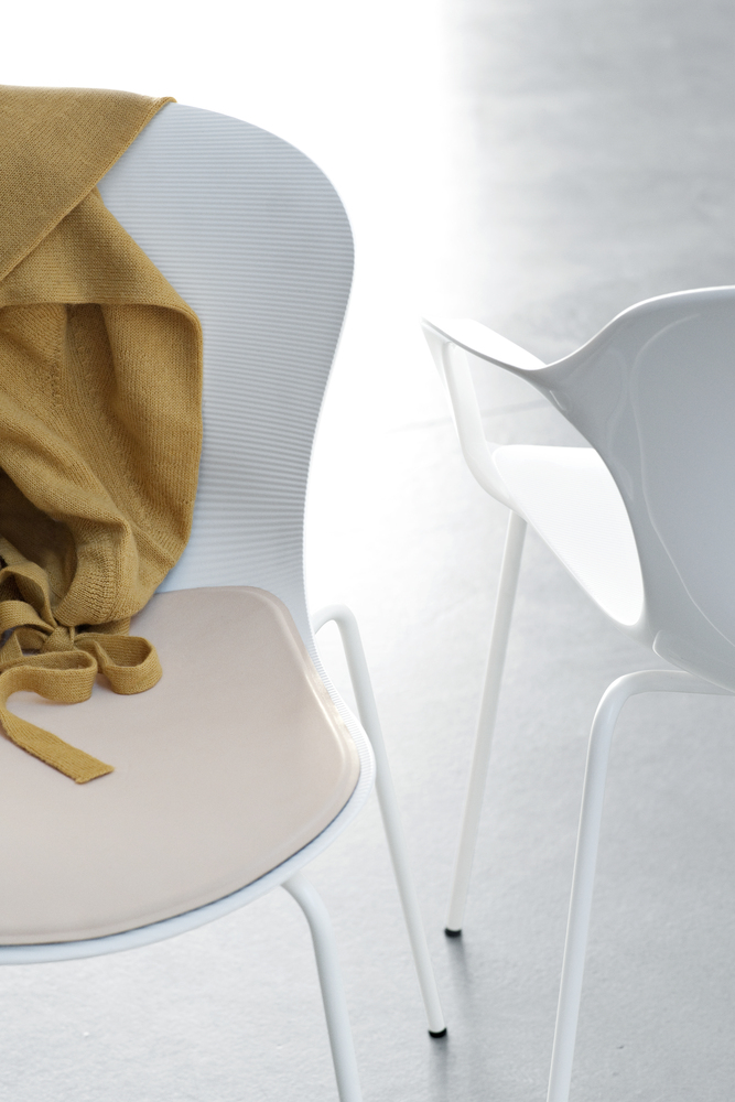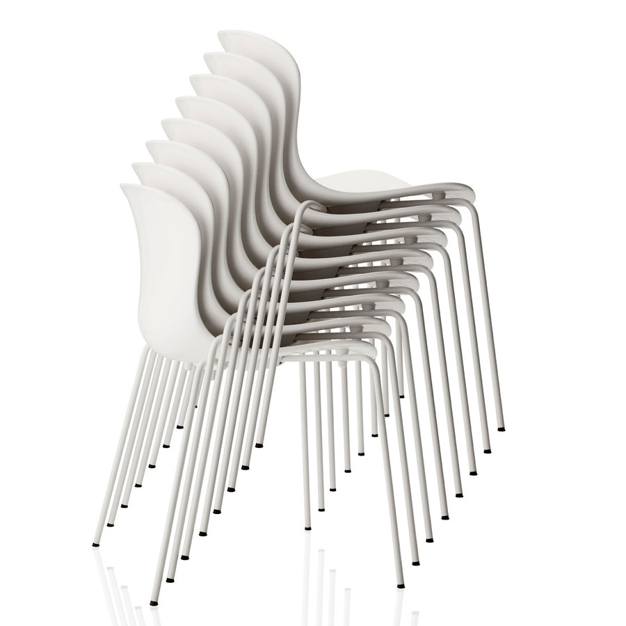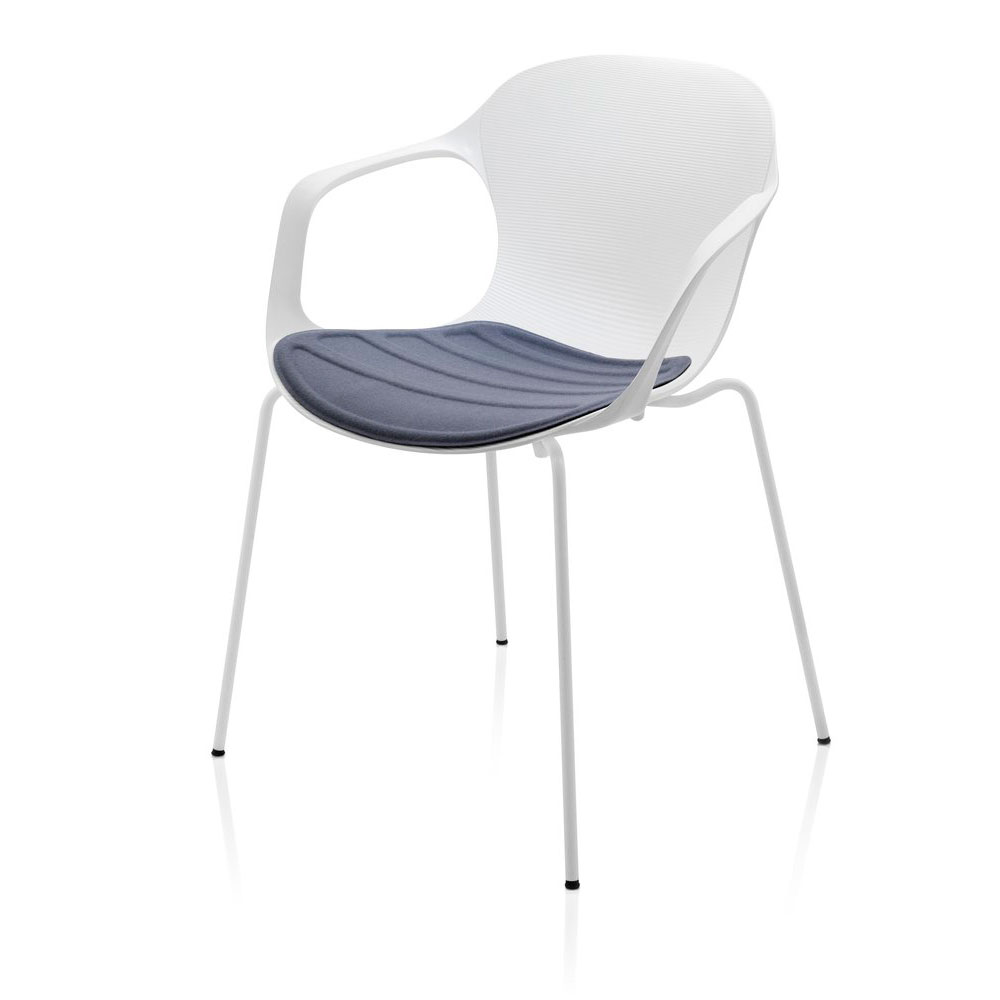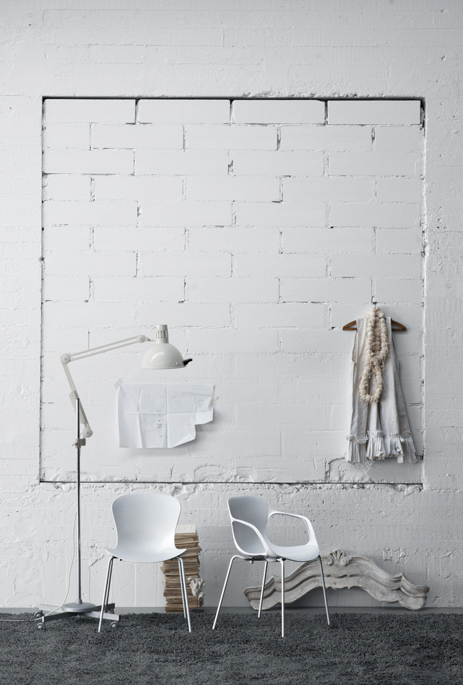 NAP™, designet av Kasper Salto, fås i mange varianter: med 4 ben (av stål eller tre), meier og som lav eller høy barstol, alle finnes med eller uten armlener. Skallens rygg har en høyglans overflate og fronten er matt med riller som fremhever stolens geometri. Velg mellom fargene Milky White og Pepper Grey. Understellet fås i forkrommet stål eller pulverlakkert i farger som matcher stolens skall. Trebena er i naturlig eikefinér. Stolen fås med tilbehør som setepolstring i stoff, rekkekobling og transportvogn. Sittehøyden er standard 45 cm, men er også tilgjengelig i 47,5 cm.